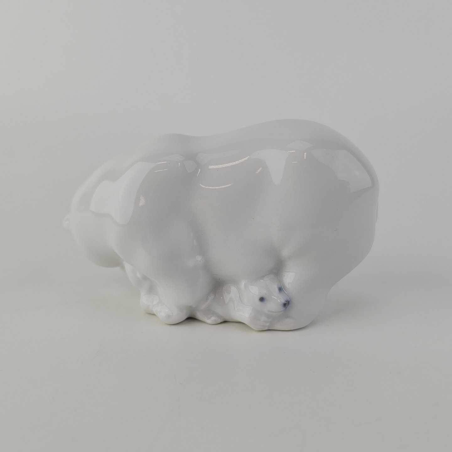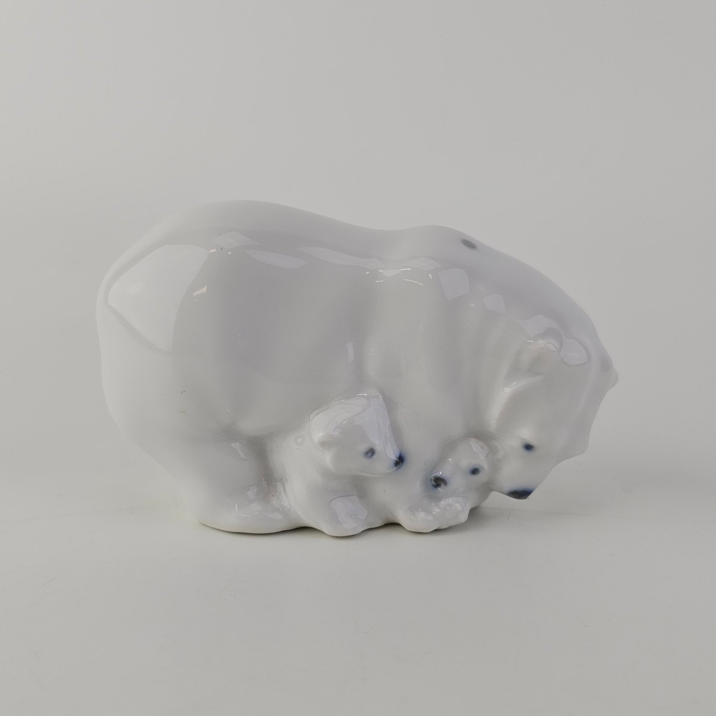 Figur i kongeligt porcelæn med motiv af en isbjørn med tre unger