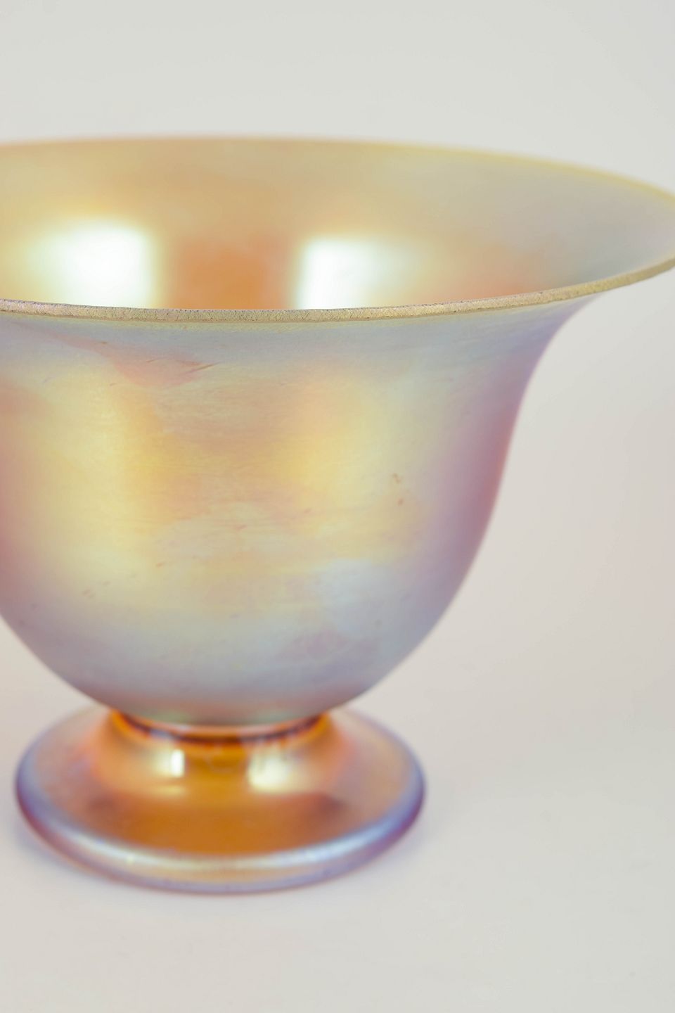 WMF (Württembergische Metallwarenfabrik) var blandt Tysklands førende producenter af design- og luksusvarer i første halvdel af 1900-tallet. I Art Deco-perioden blev kunstglas ofte udformet med harmoniske proportioner og forædlede overflader, herunder iriserende behandlinger, der gav dybde og levende farvespil.