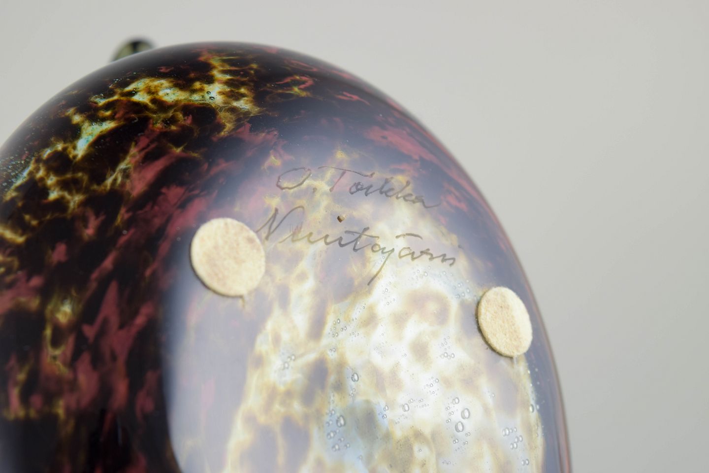 Oiva Toikka (1931–2019) var en af Finlands mest betydningsfulde glaskunstnere og er internationalt kendt for sine fugleskulpturer i kunstglas. Hans arbejde for Nuutajärvi var præget af fri formgivning, teknisk virtuositet og en legende tilgang til farve og form. Fuglene blev produceret i mindre serier og er i dag eftertragtede samlerobjekter inden for nordisk glaskunst.
