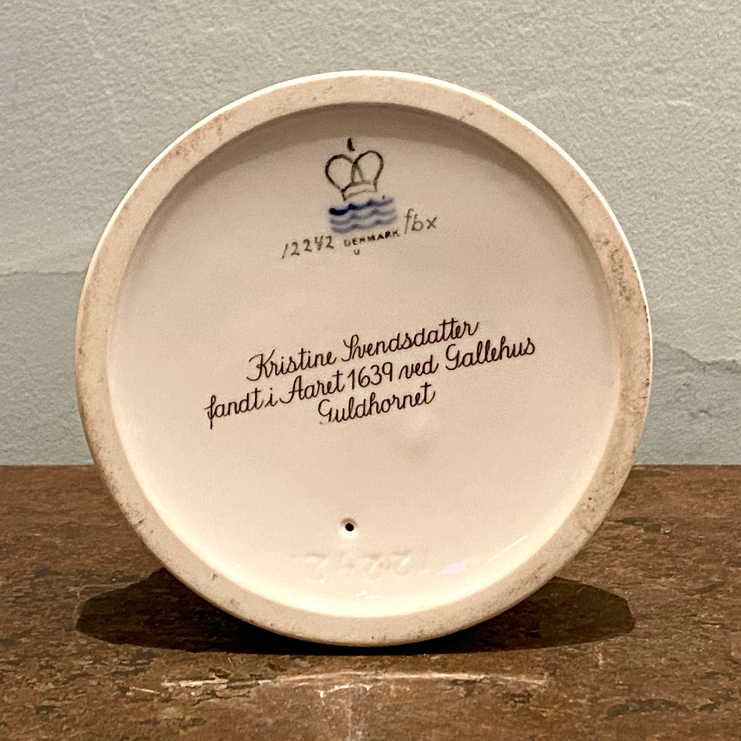 Royal Copenhagen 'The Girl with the Golden Horn - Kristine Svendsdatter with the Golden Horn' porcelain. Juliane Marie figurine No. 12242. Designed by Holger Christensen in 19411. black. H. 22 cm. Ø 11 cm.