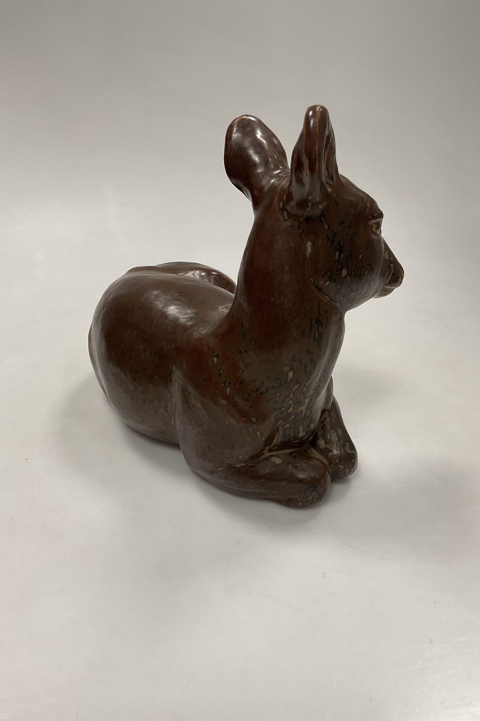 Royal Copenhagen Stentøjsfigur af liggende Hjortekid No 20506. Knud Kyhn. Måler 24 cm(9 29/64 in.)