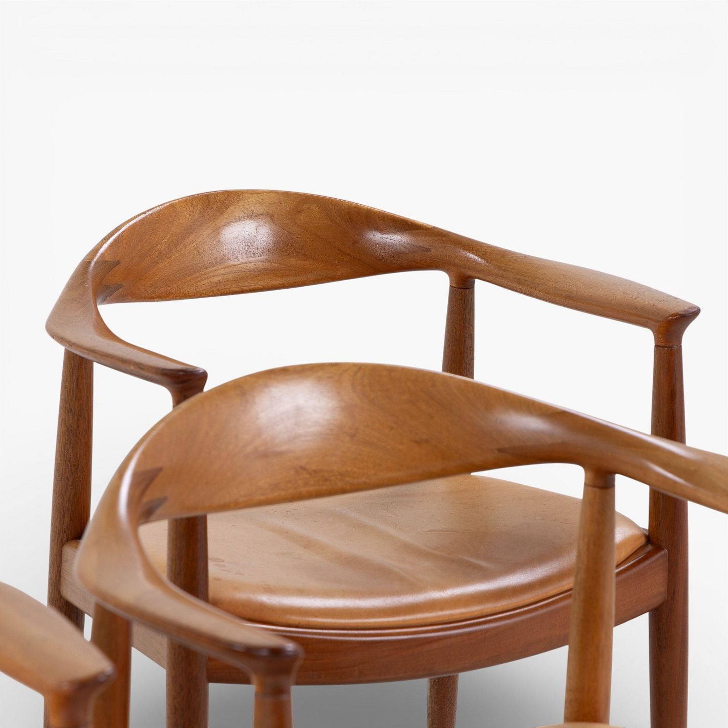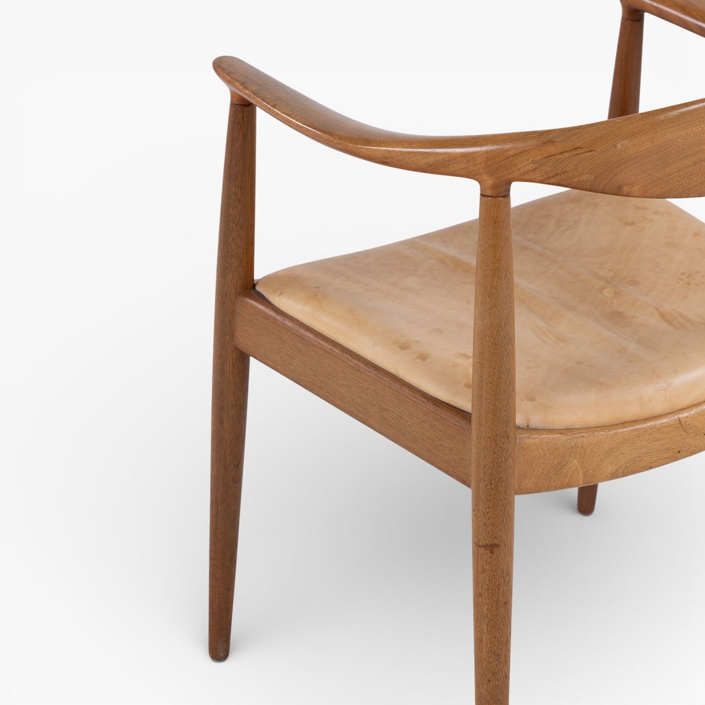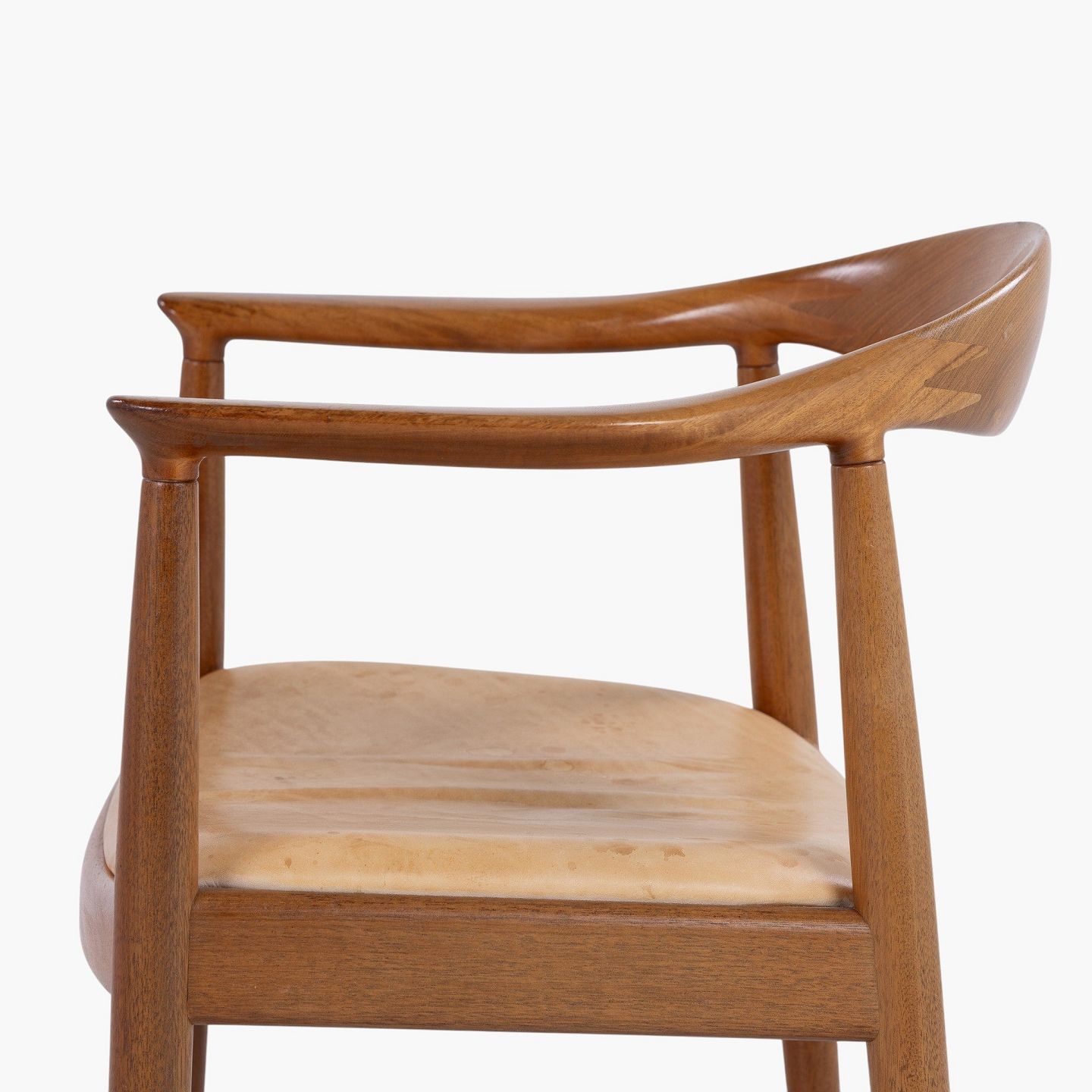 JH 503 - 'The Chair'-armstol i mahogni med sæde i patineret naturlæder. Mærket fra producent.