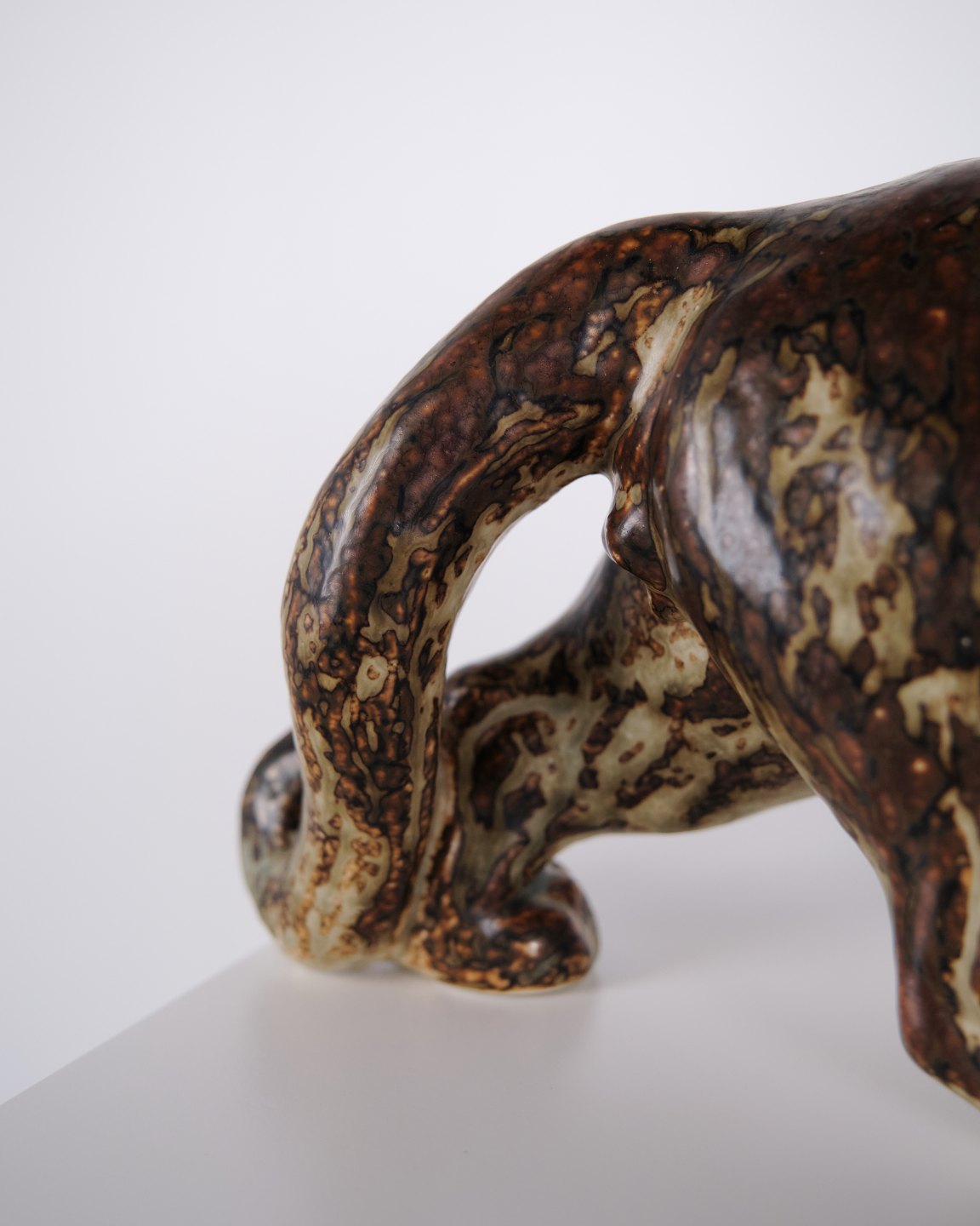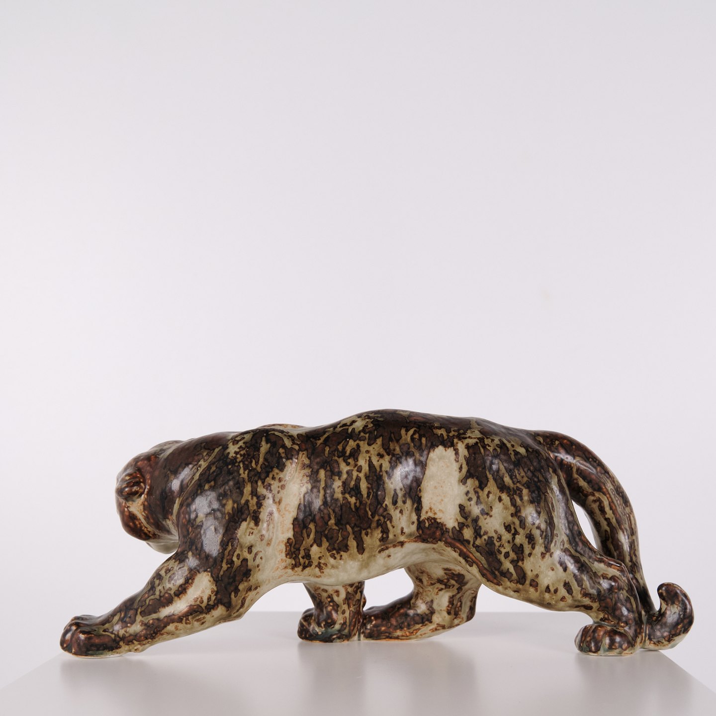 Stentøjsfigur med motiv af panter, model 20283, designet af Knud Kyhn for Royal Copenhagen. Figuren er udført i stentøj og er et karakteristisk eksempel på Knud Kyhns arbejde med dyrefigurer, hvor fokus ligger på kropsform, bevægelse og materialets overflade. Modellen er produceret hos Royal Copenhagen og er efterspurgt inden for dansk keramik fra midten af det 20. århundrede.