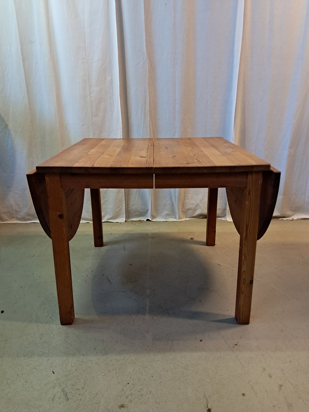 Spisebord i massivt fyrretræ med klapper og 2 tillægsplader, fra 1980erne.
