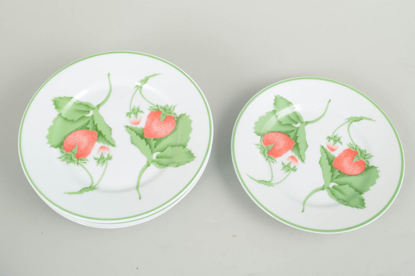 Limoges-porcelæn er kendt for sin fine kvalitet og lange tradition for dekoreret bordservice. I 1980’erne blev frugt- og blomsterdekorationer populære som et let og dekorativt udtryk til hverdags- og serveringsservice. Serien Fraise er et typisk eksempel på denne stil med sit naturalistiske motiv og enkle grønne kant.
