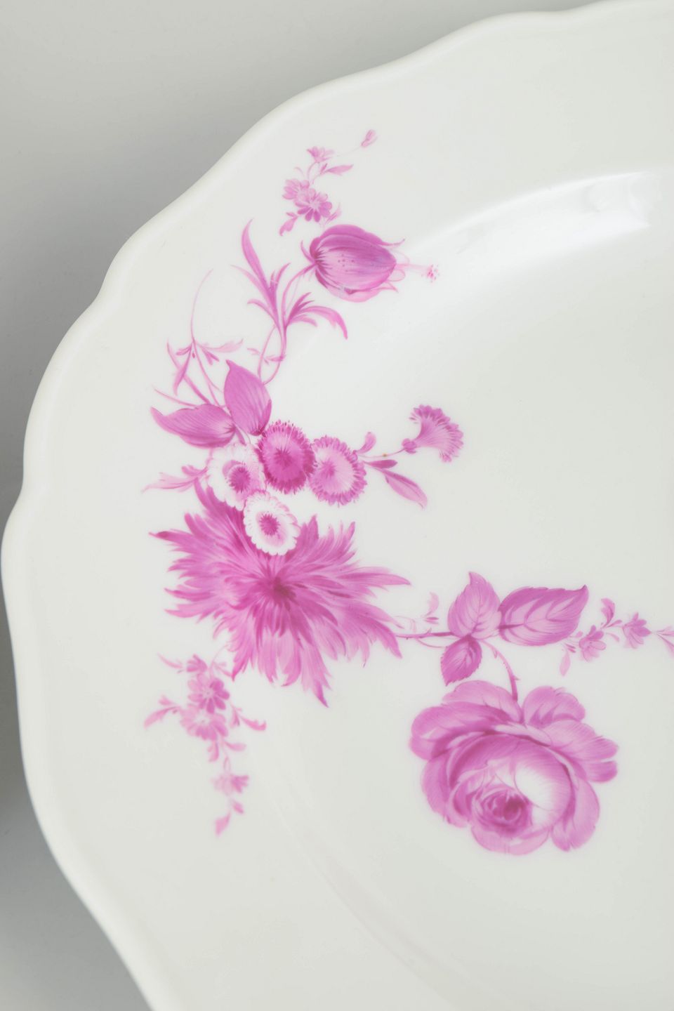 Meissen-manufakturet, grundlagt i 1710, er Europas ældste porcelænsfabrik og internationalt kendt for sin høje tekniske og kunstneriske kvalitet. I begyndelsen af 1900-tallet blev klassiske blomsterdekorationer fortsat produceret som en del af fabrikkens traditionsbundne sortiment, ofte inspireret af 1700-tallets naturalistiske motiver.