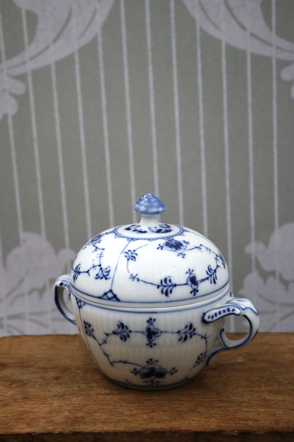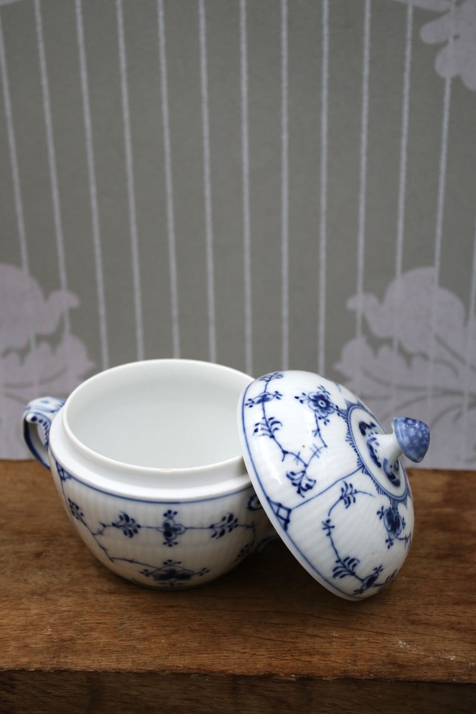 Royal Copenhagen Blue Fluted Plain Sugar Bowl with Lid and Handle.