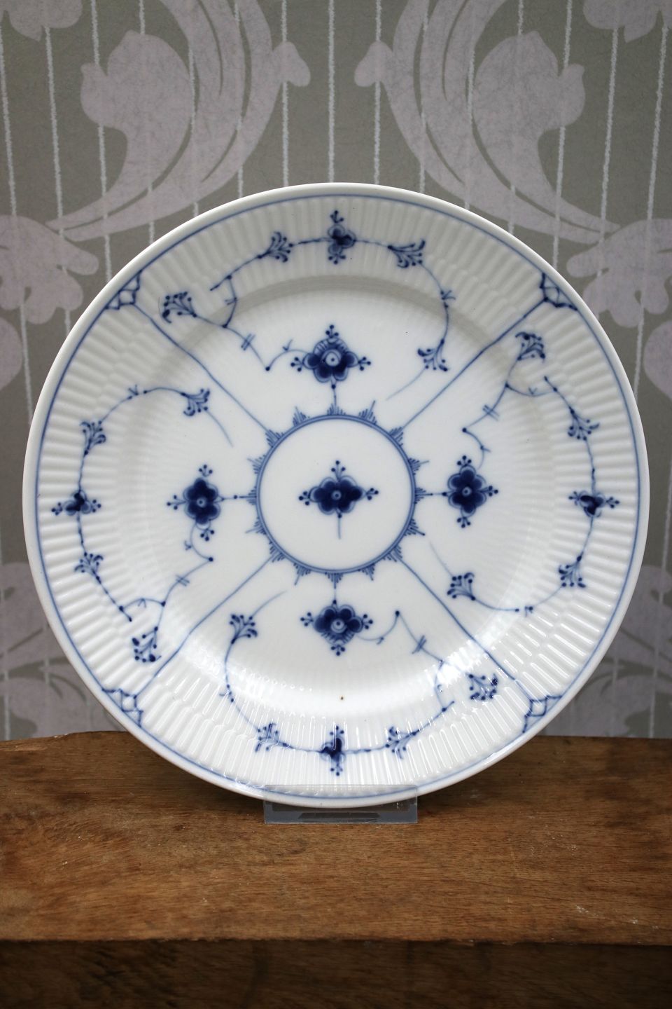 Gammel Bing & Grøndahl Musselmalet / Blåmalet Riflet middagstallerken.