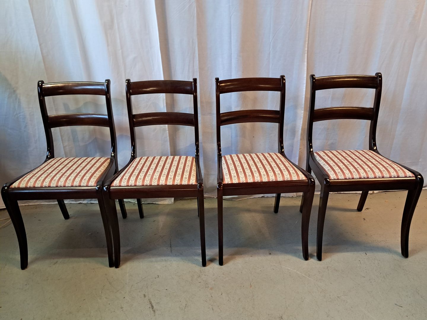 4 Stole i massivt mahogni og bøgetræ, fra 1980erne.