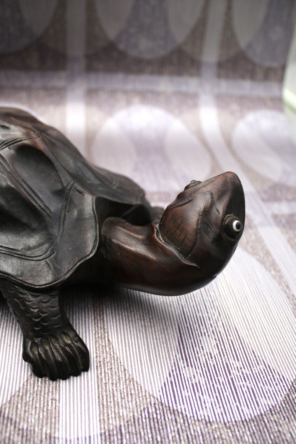 Gammel skildpadde udskåret i massivt mørkt træ med en rigtig fin patina.