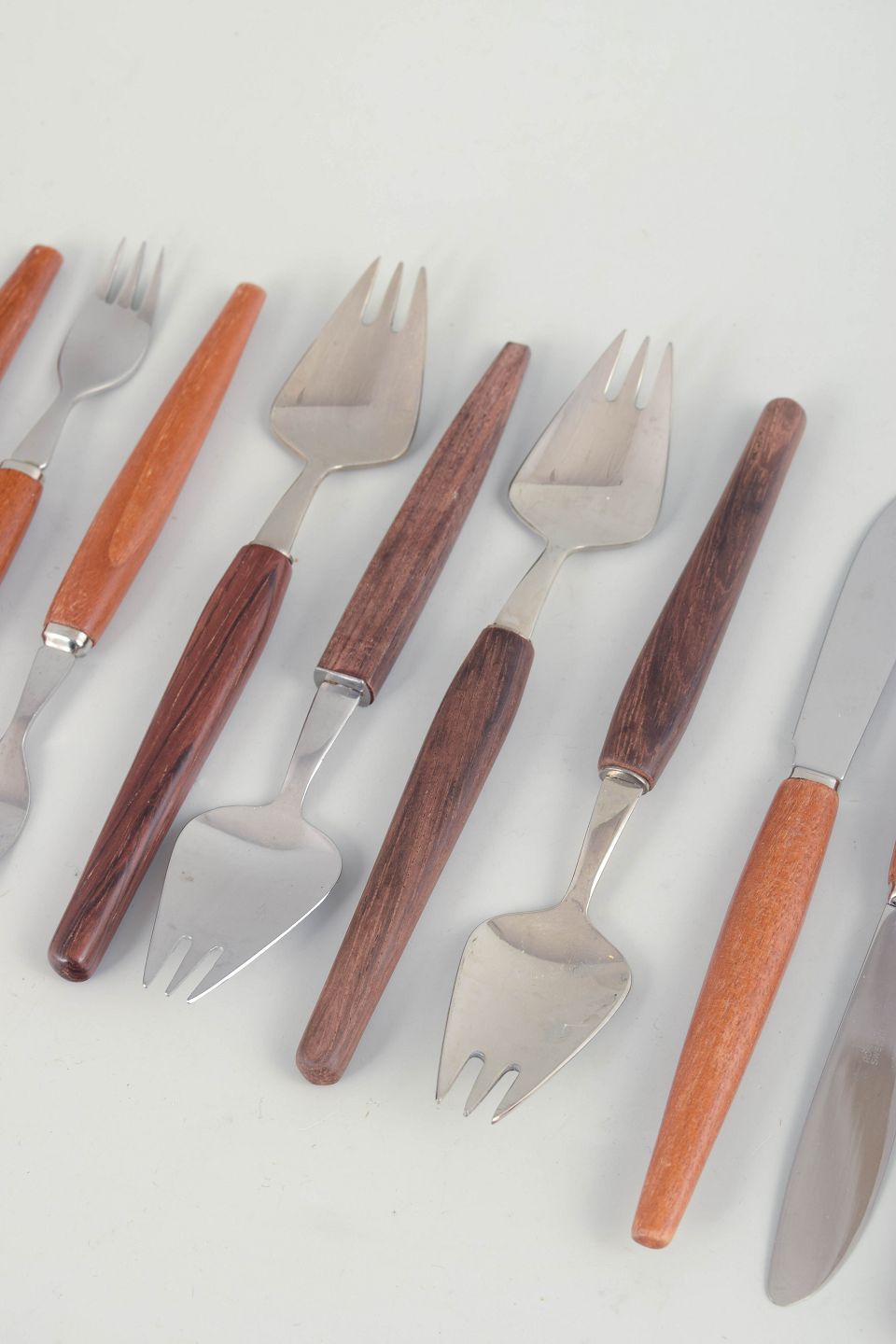 Svensk Frokostbestik til 4 Personer, teak og rustfrit stål.