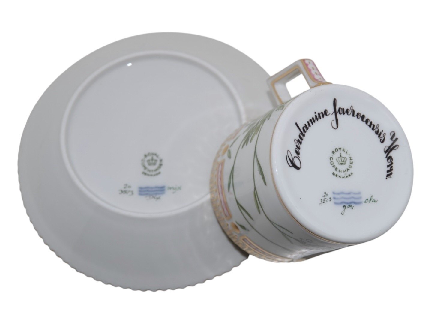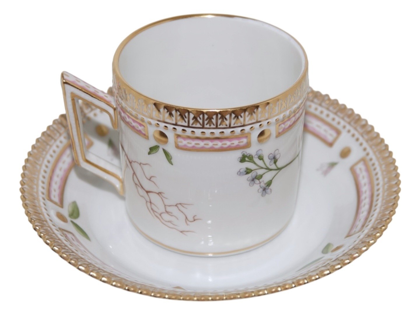Royal Copenhagen Flora Danica, chokoladekop med tilhørende underkop.