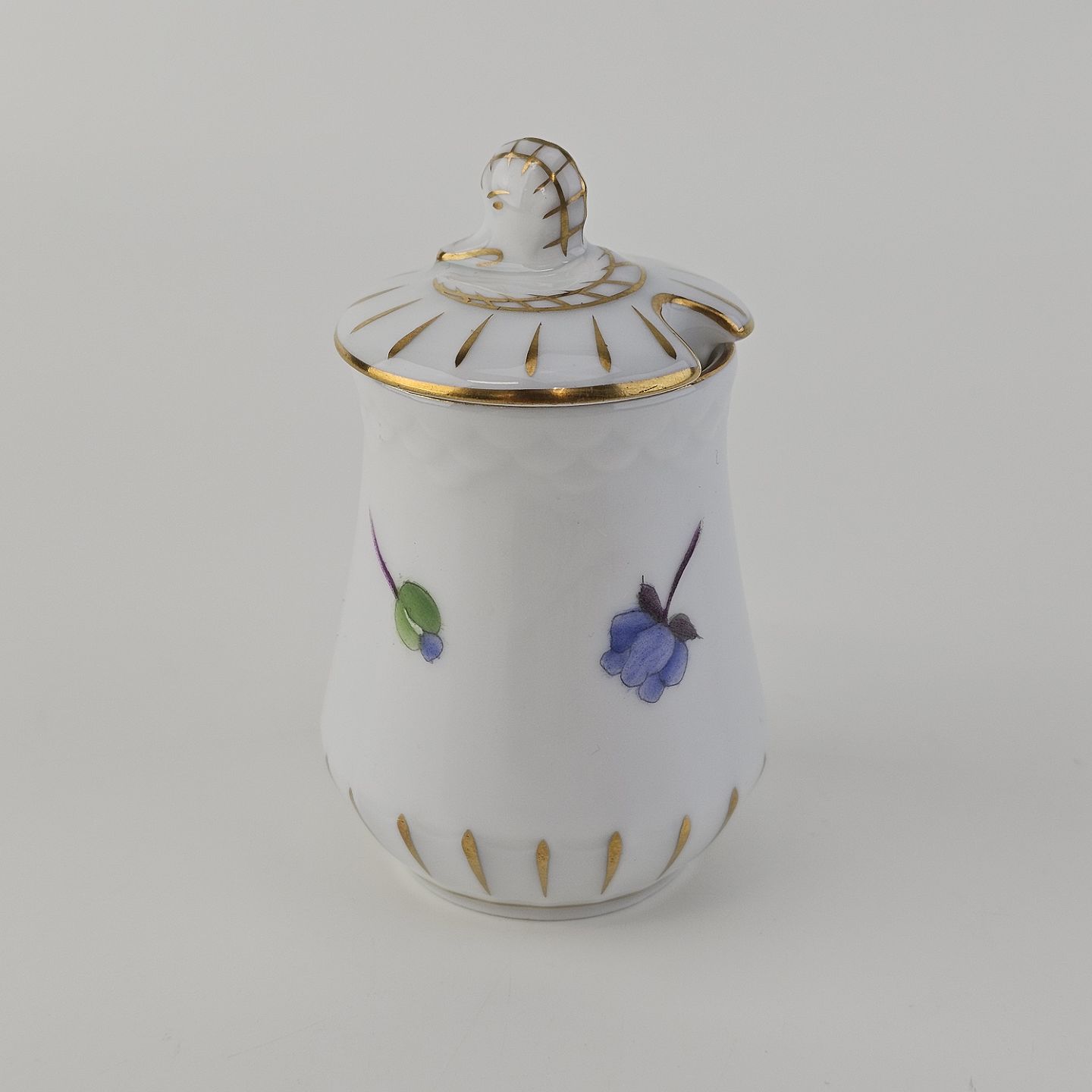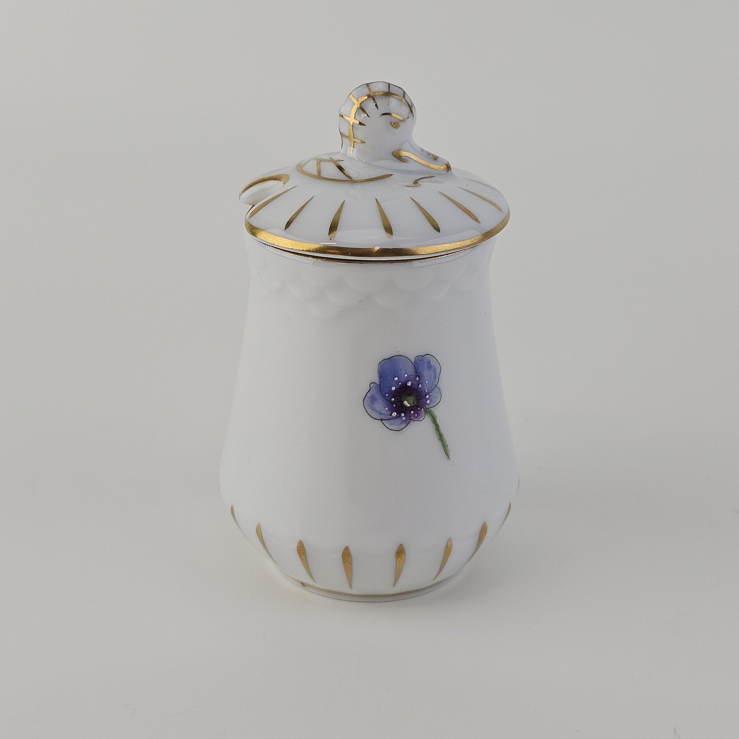 Antonius er af hvidt porcelæn med skælform dekoreret med håndmalede blå anemoner og guldkant. Også kendt under navnet Blå Anemone.