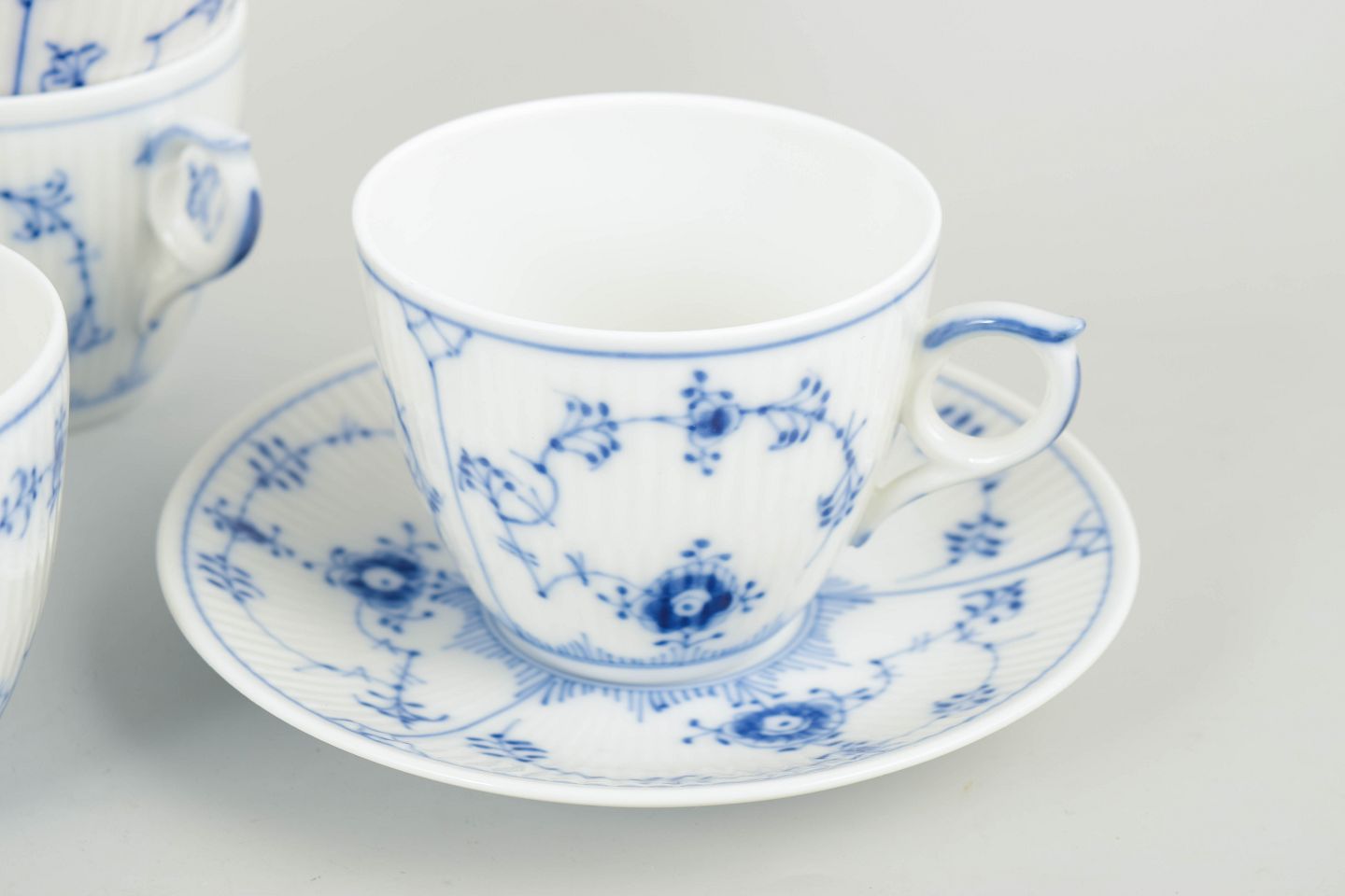 Royal Copenhagen, Musselmalet riflet kaffekopper med underkopper, sæt på 5 par.