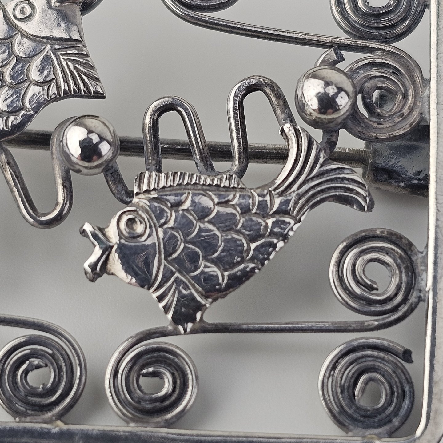 Broche i sølv med motiv af fisk