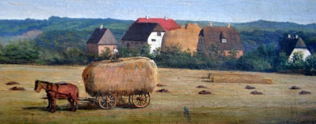 Rademacher, Niels Grønbek (1812 - 1885) Danmark: Høstscene fra en sjællandsk herregård.