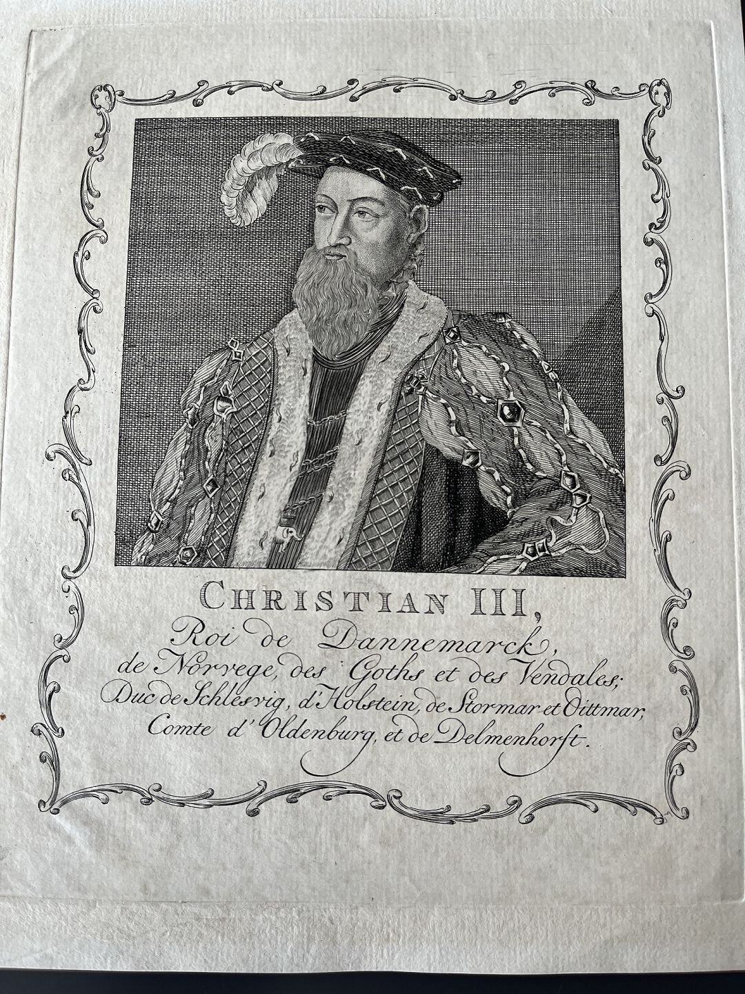 Kobberstik - Portræt af HM Kong Christian III af Danmark og Norge.