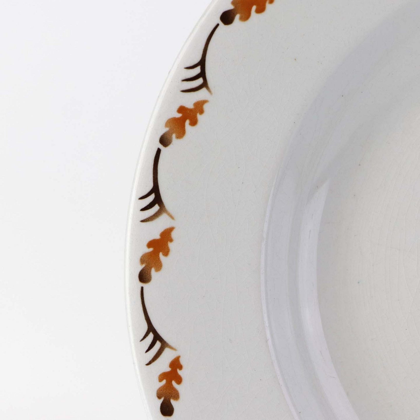 Dyb suppetallerken i fajance fra Hjortestellet Convolvolus, som blev fremstillet i perioden 1930-1940