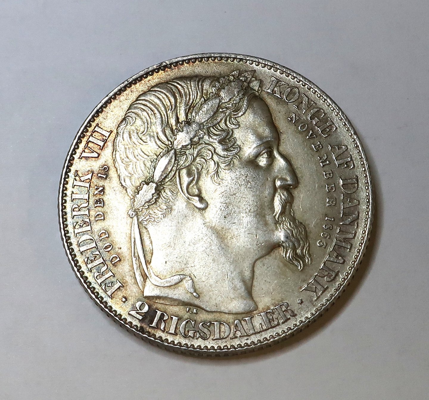 Danmark. Christian lX. Tronskiftespecie 1863.