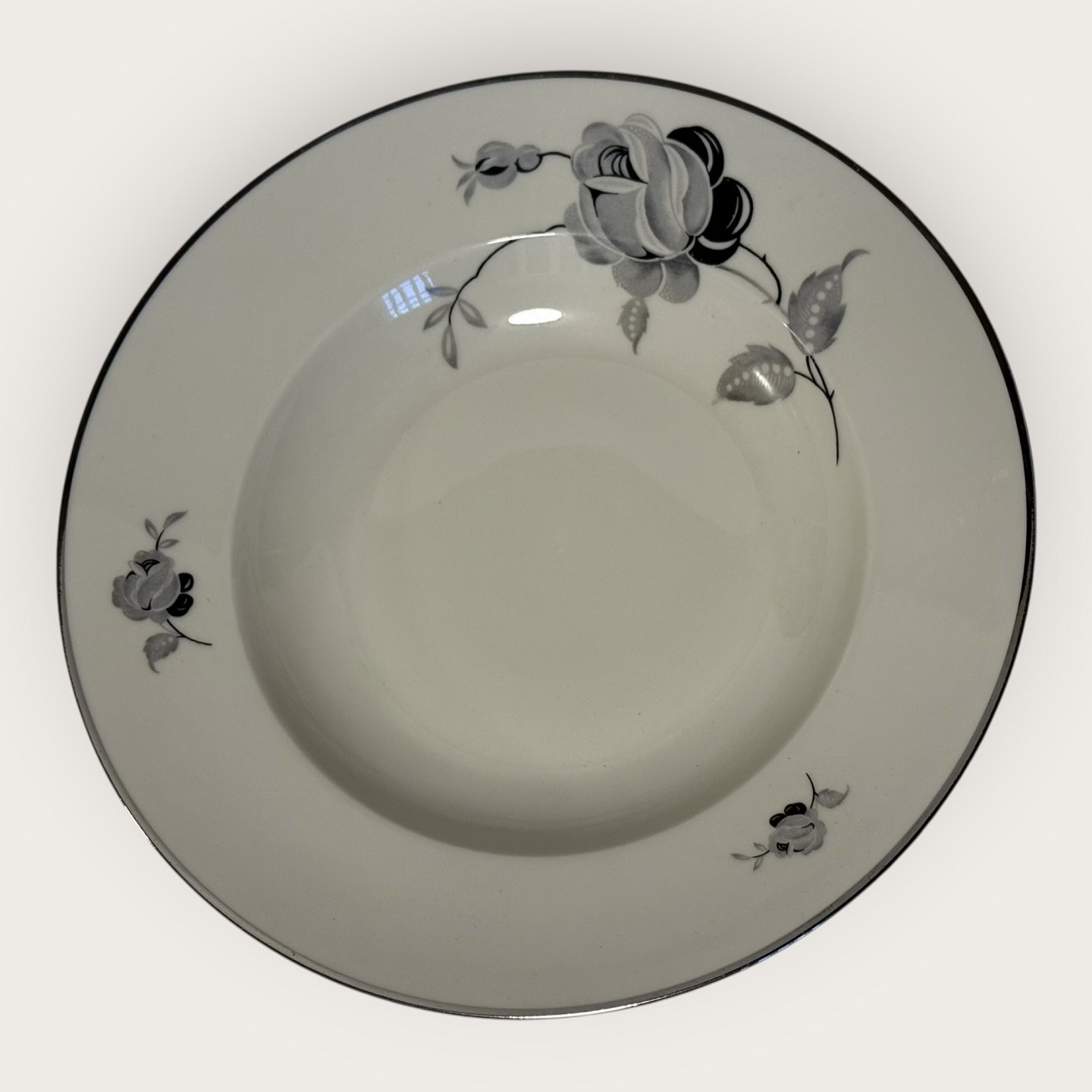 | Sort rose, med Plantin kant, KPM, Lyngby, lille dyb tallerken, 21,5cm i diameter *Pæn stand*
