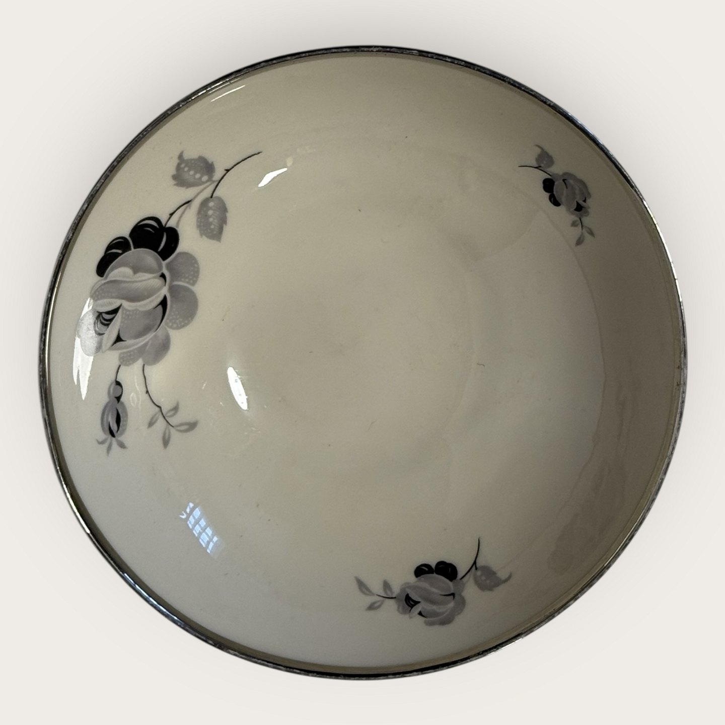 | Sort rose, med Plantin kant, KPM, Lyngby, lille skål, 15cm i diameter *lidt slid på sølvkanten ellers pæn stand*