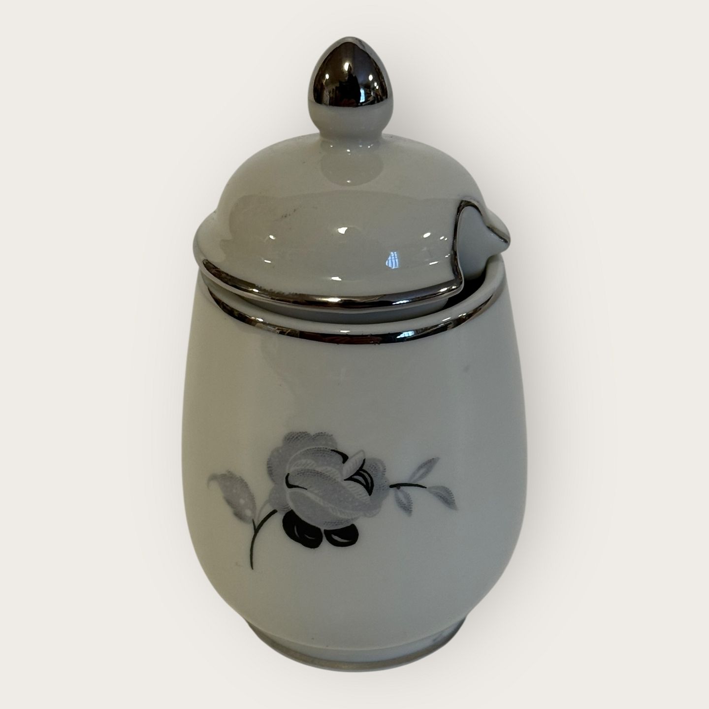 Sort rose, med Plantin kant, KPM, Lyngby, Sennepskrukke, 9cm høj *Pæn stand*