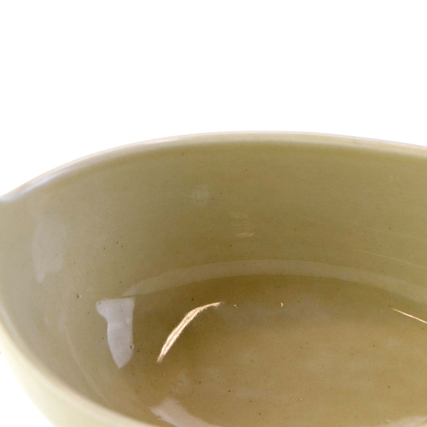Fremstår med nister i glasuren samt støbningsfejl ved næbbet.