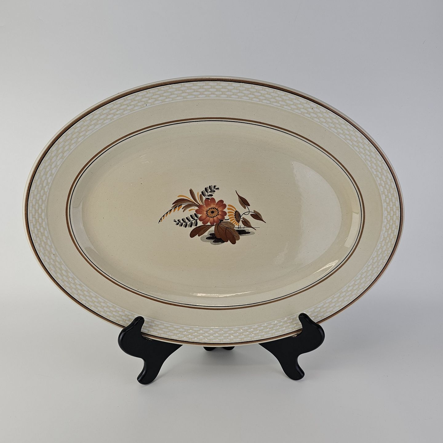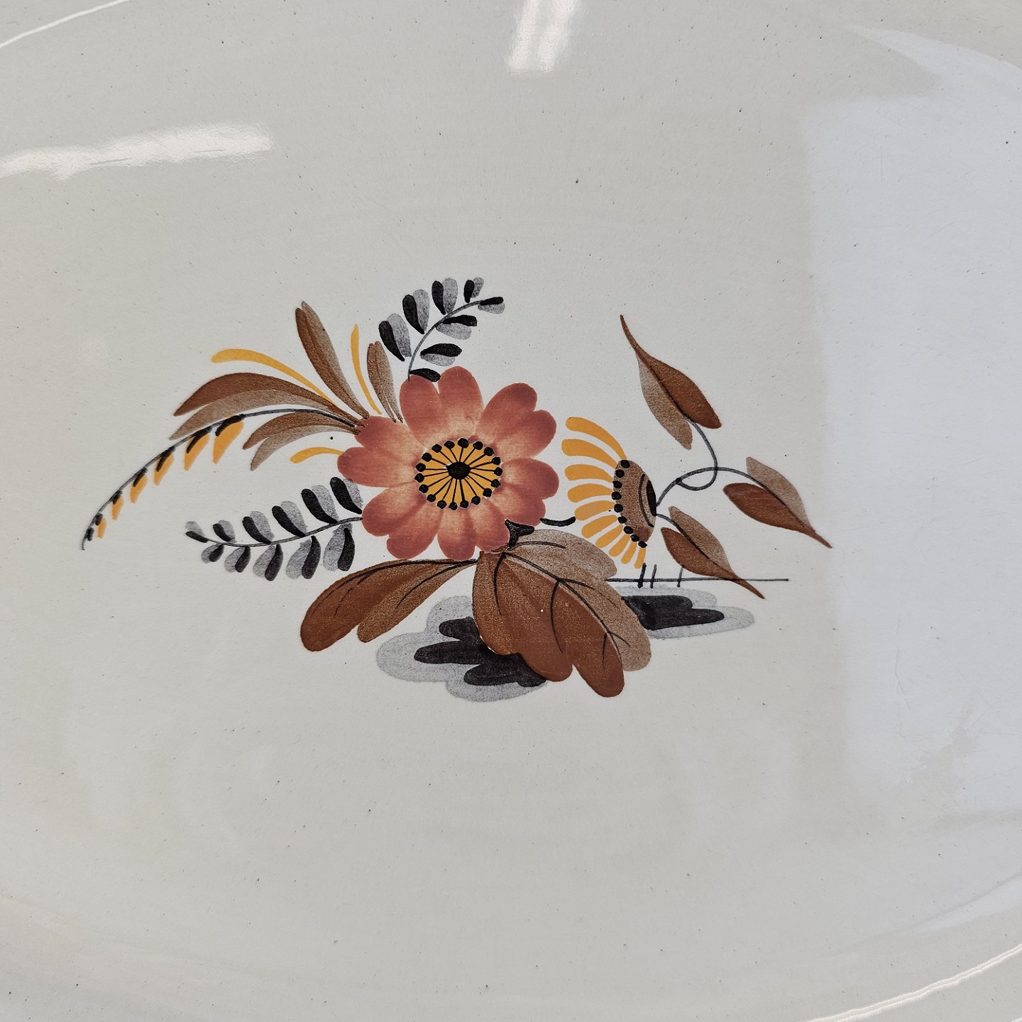 Knud er cremefarvet fajance dekoreret med flettet kant og brune og orange blomster. Stellet blev produceret i år 1934-1963.