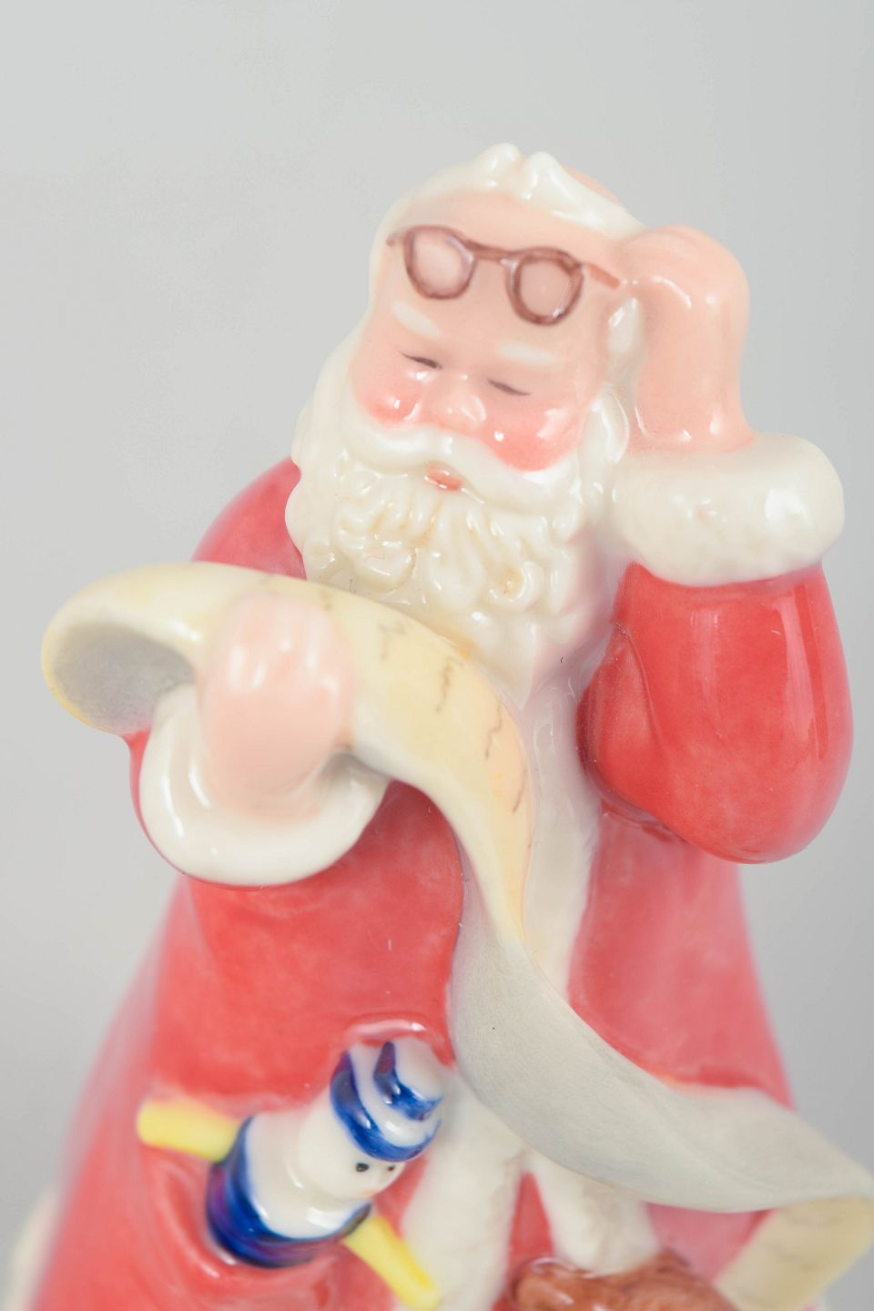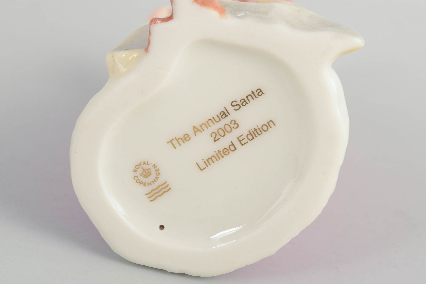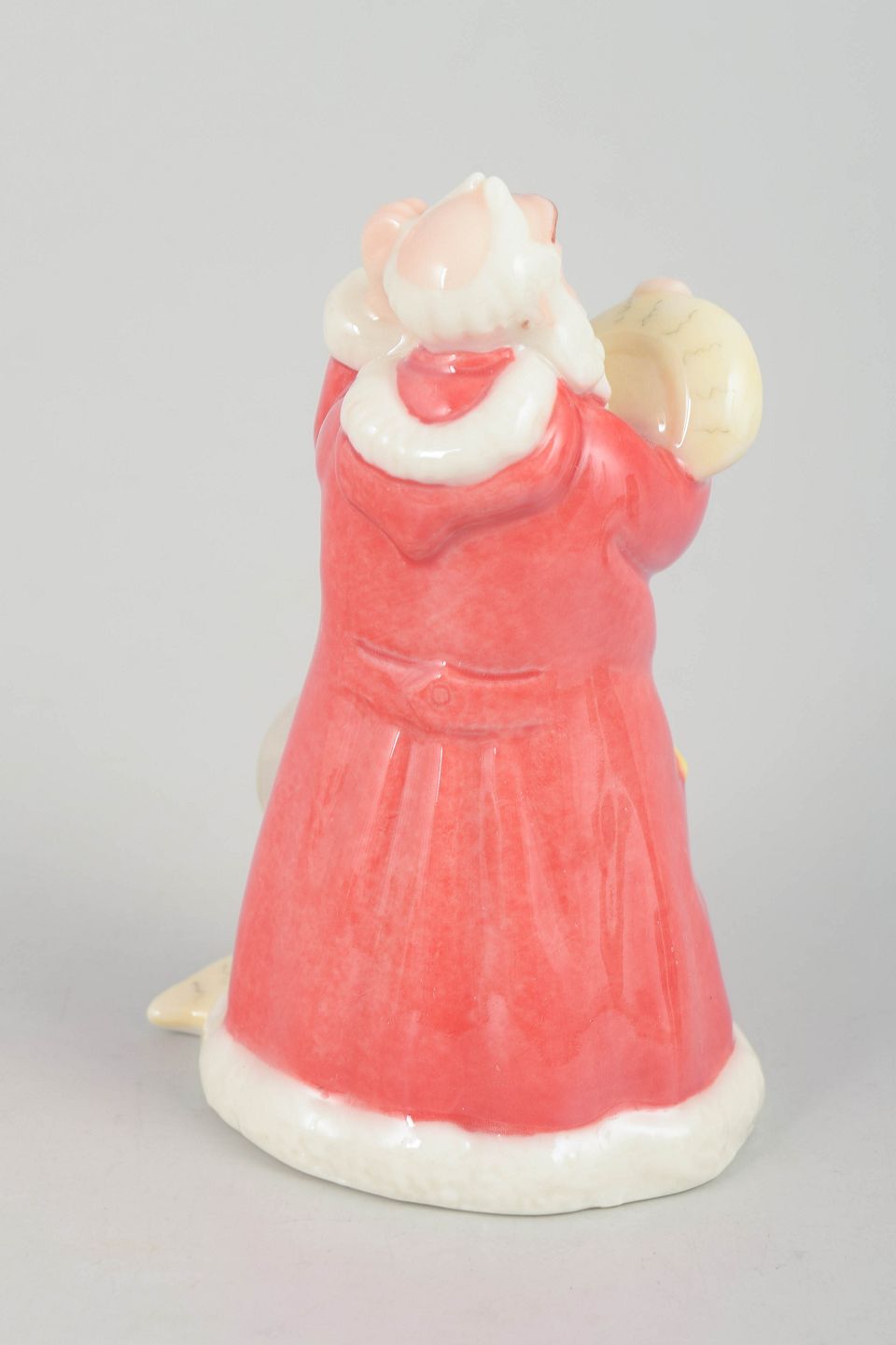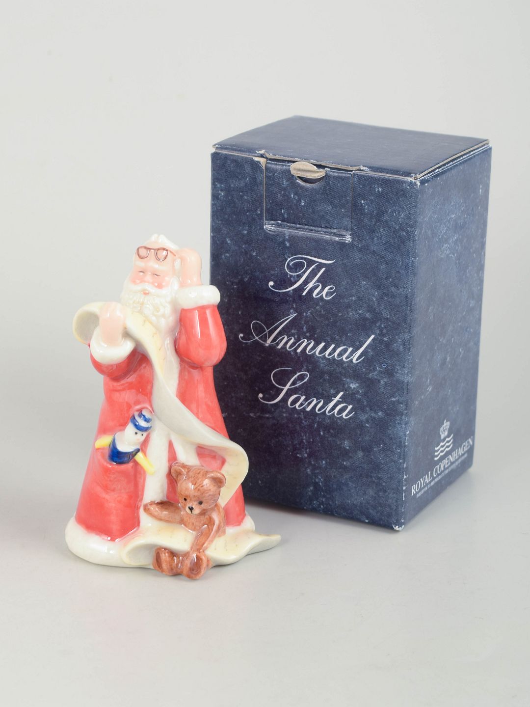 Dekorativ julemand figur i håndmalet porcelæn fra 2003, udført med bamse og legetøj. Figuren er detaljeret modelleret med klassisk rød kappe og hvid pelskant. Leveres med original æske. Første sortering.