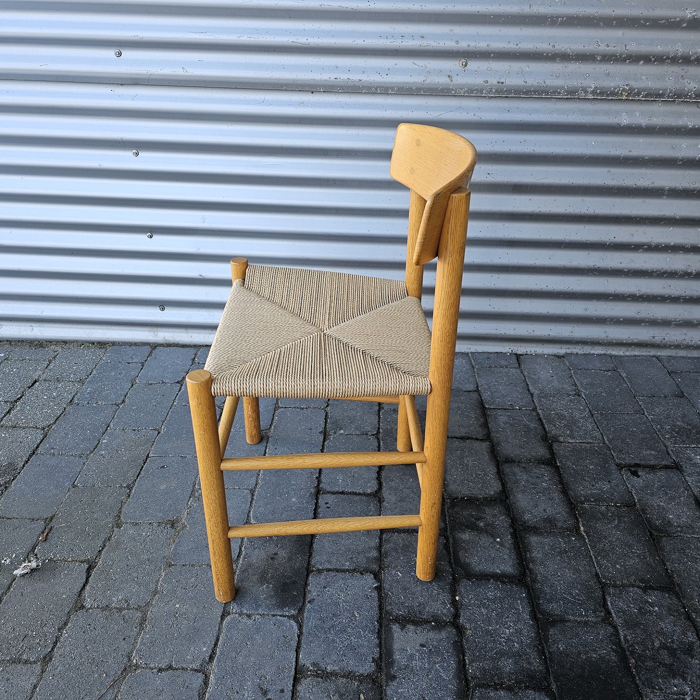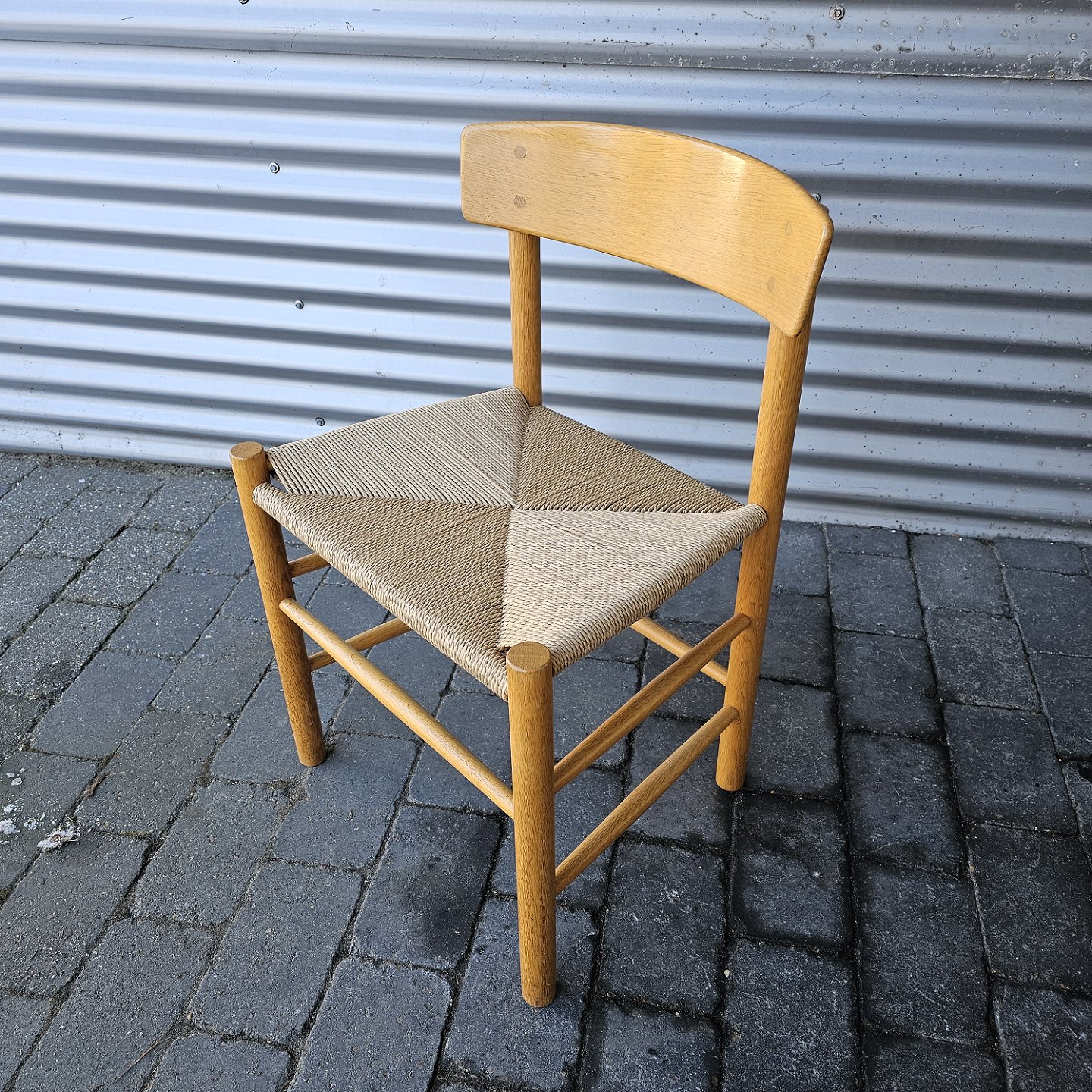 Sæt af 4 folkestole i lakeret eg med sæder af flet, model J39
