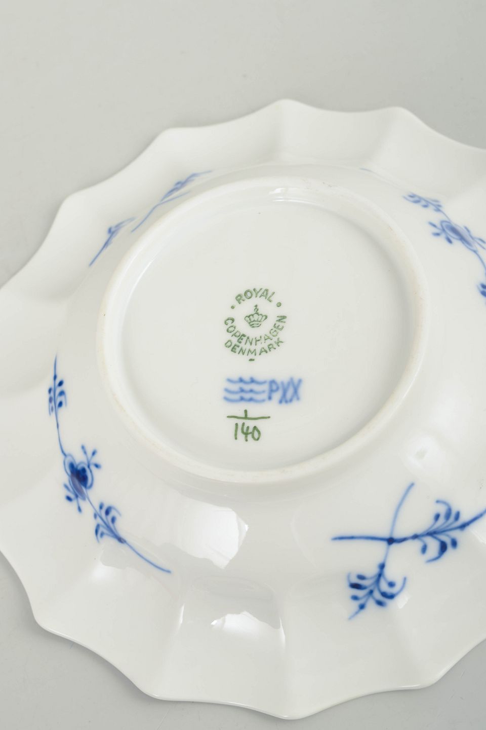 Royal Copenhagen blev grundlagt i 1775 i København under kongelig bevilling. Fabrikken er internationalt anerkendt for sit håndmalede porcelæn og sit høje kunstneriske niveau. Musselmalet Riflet er et af fabrikkens ældste og mest ikoniske stel, oprindeligt introduceret i 1775 og fortsat i produktion gennem århundreder.