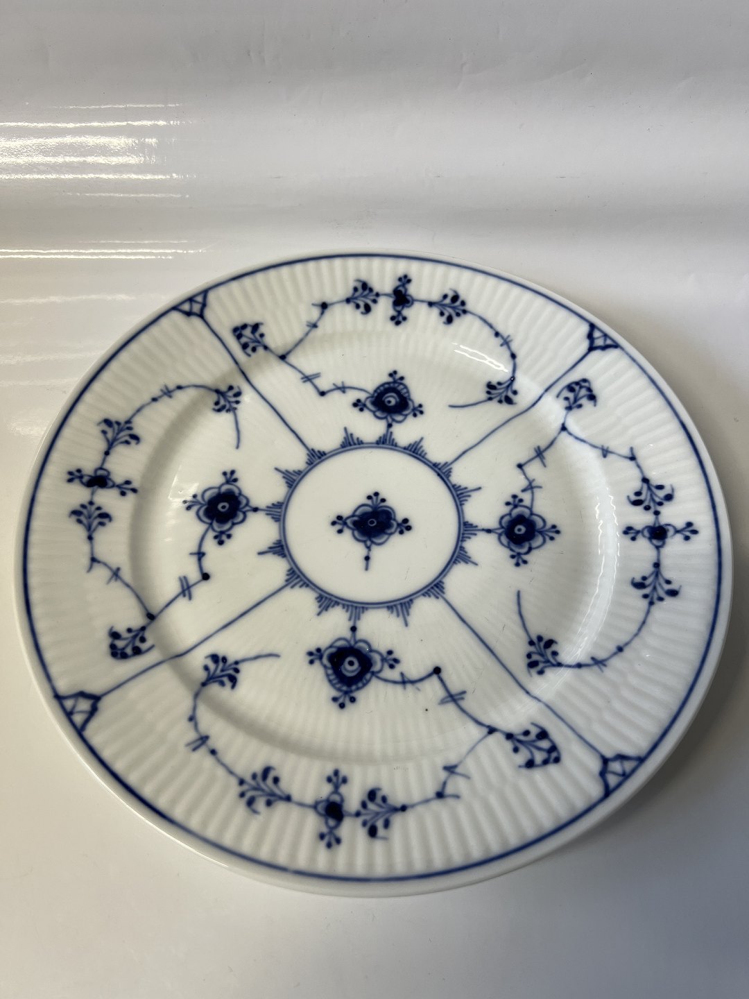 Royal Copenhagen Musselmalet Riflet, helt flad lille middagstallerken.