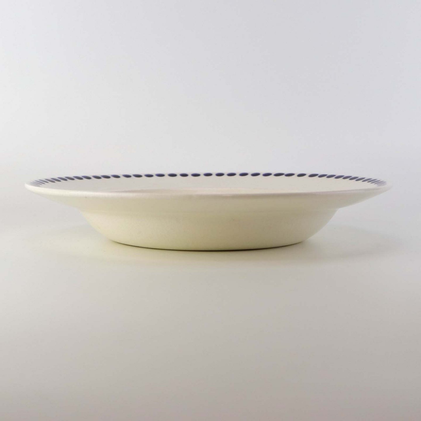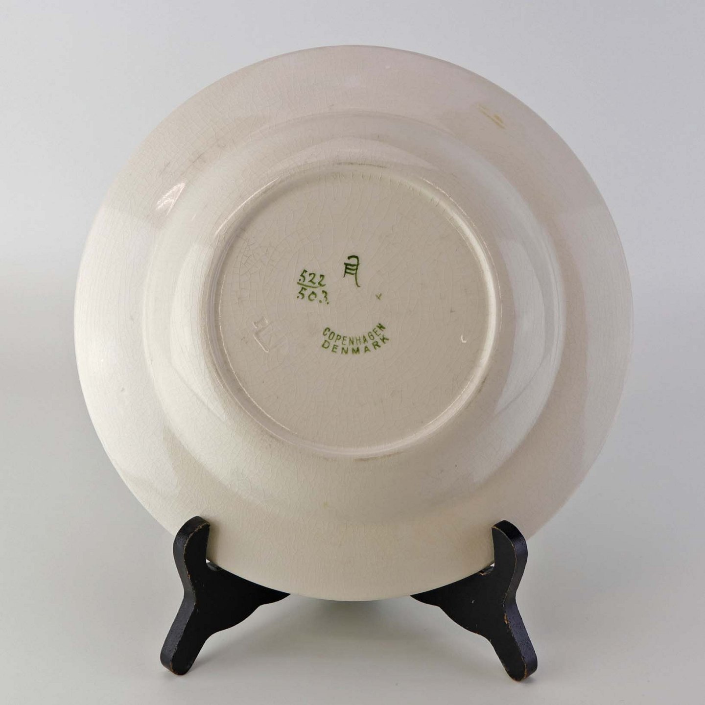 Lille dyb suppetallerken i fajance fra stellet Blåregn. Stellet er fremstillet i perioden år 1903-1933. Nr. 522/503