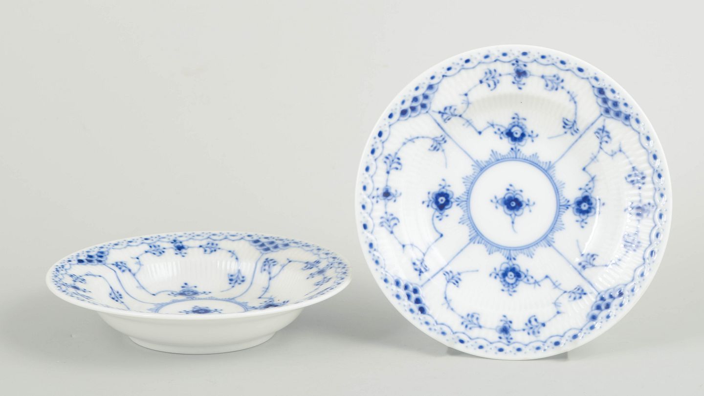 Royal Copenhagen Musselmalet Halvblonde, sæt af to små dybe tallerkener.