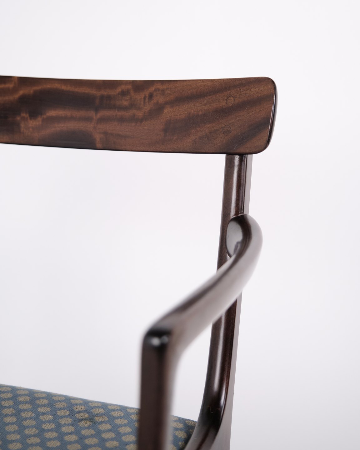 Armstol fra serien Rungstedlund formgivet af Ole Wanscher og produceret hos Poul Jeppesen Møbelfabrik i Danmark i 1950’erne. Stolen er udført i et klassisk og velafbalanceret formsprog, hvor proportioner og snedkerarbejde afspejler den danske designtradition fra midten af det 20. århundrede.