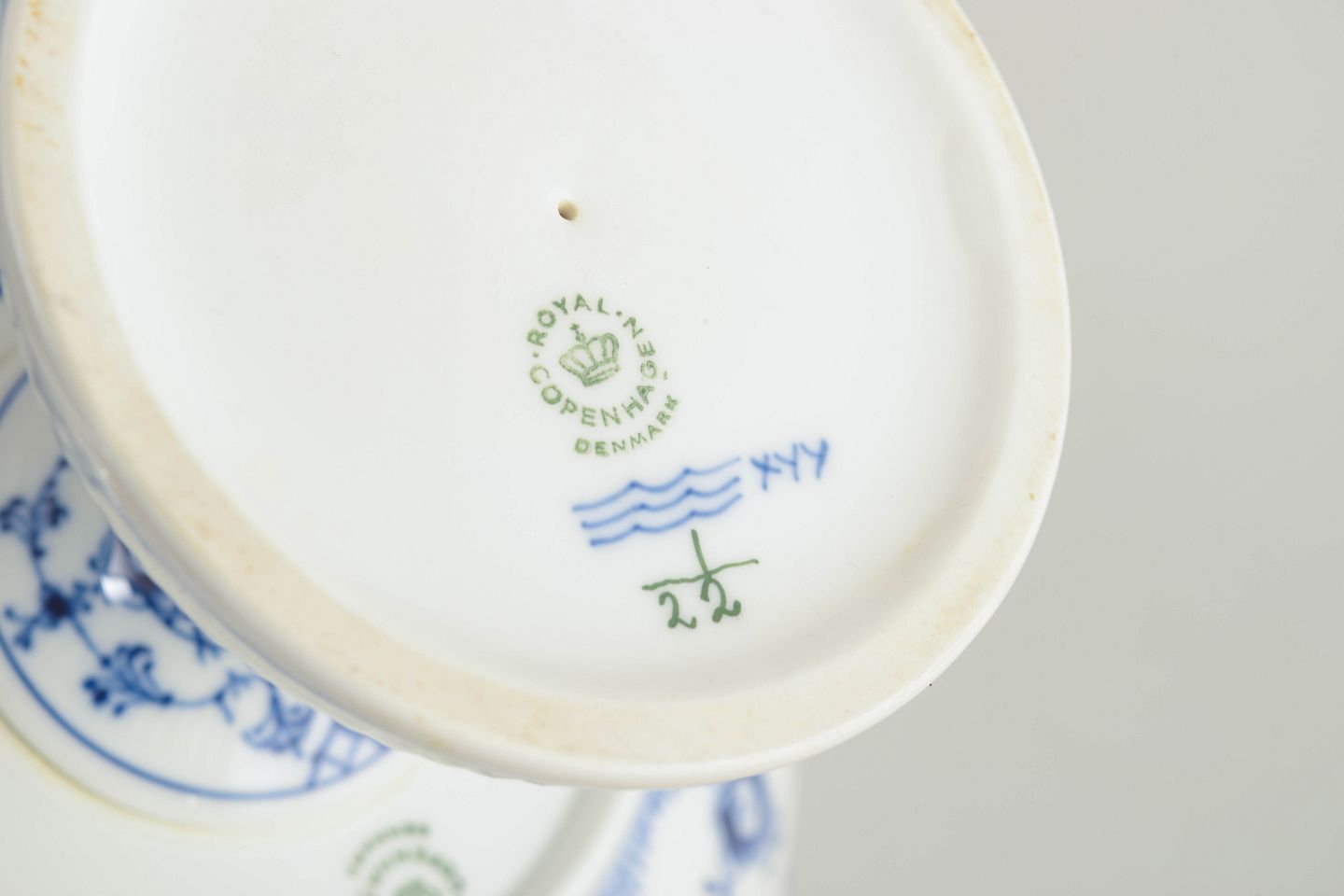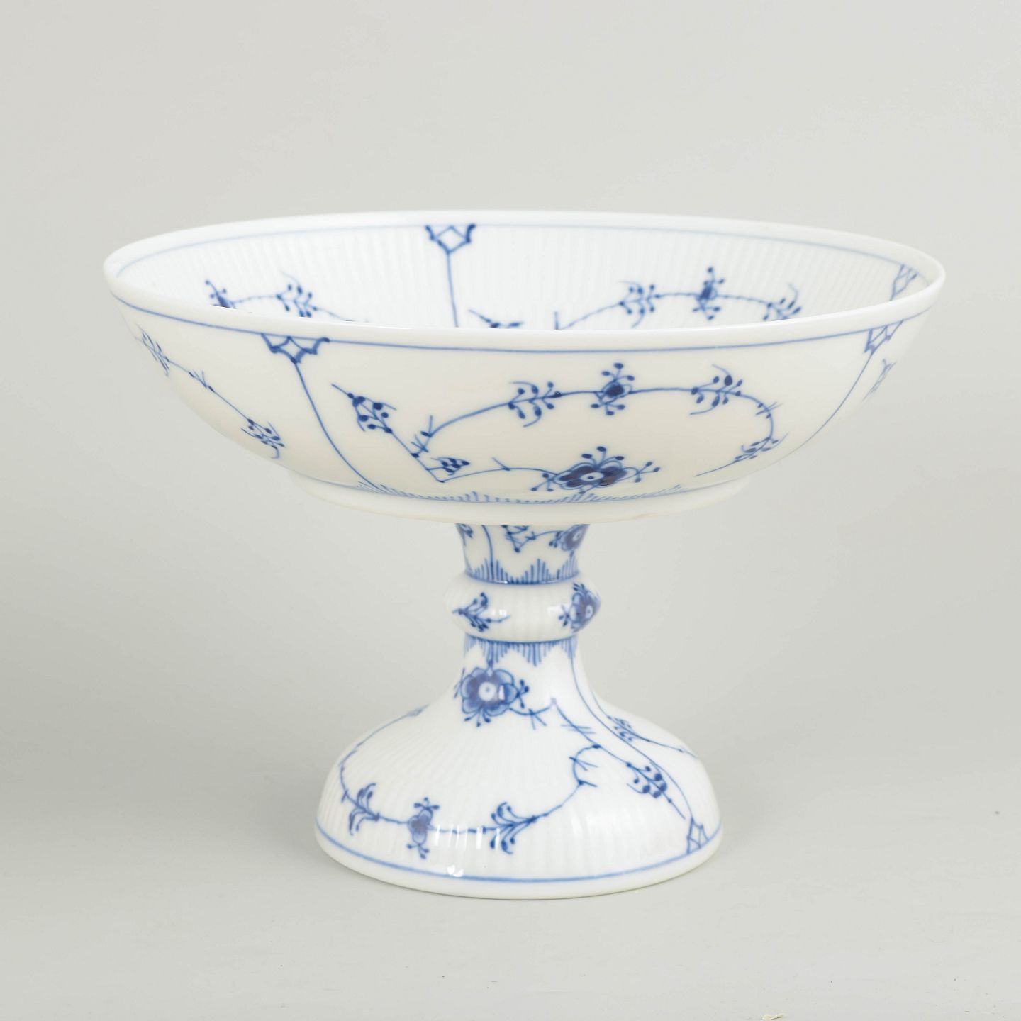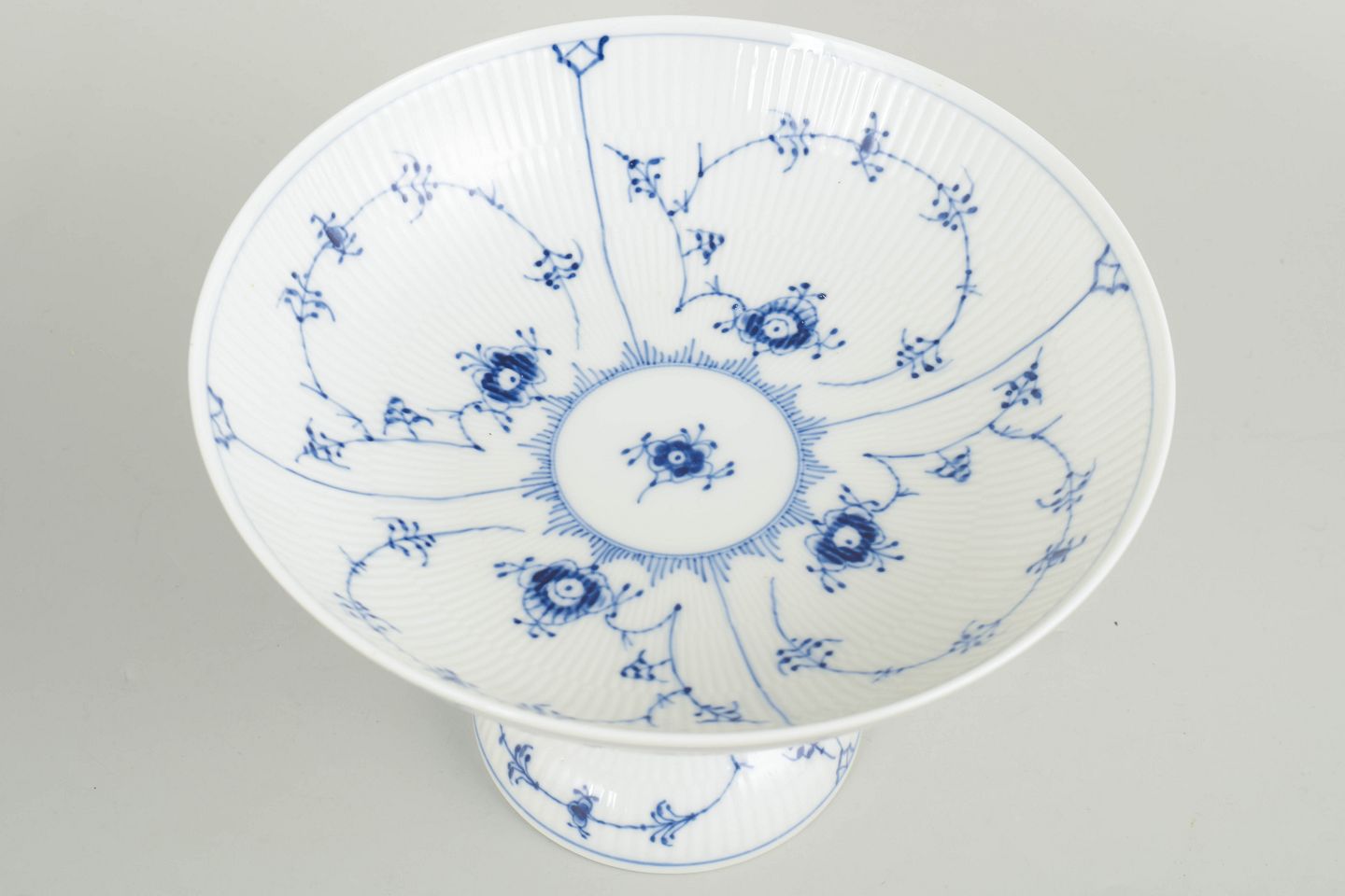 Opsats i håndmalet porcelæn fra Musselmalet Riflet med klassisk underglasurdekoration i koboltblå og riflede felter. Model 1/22.