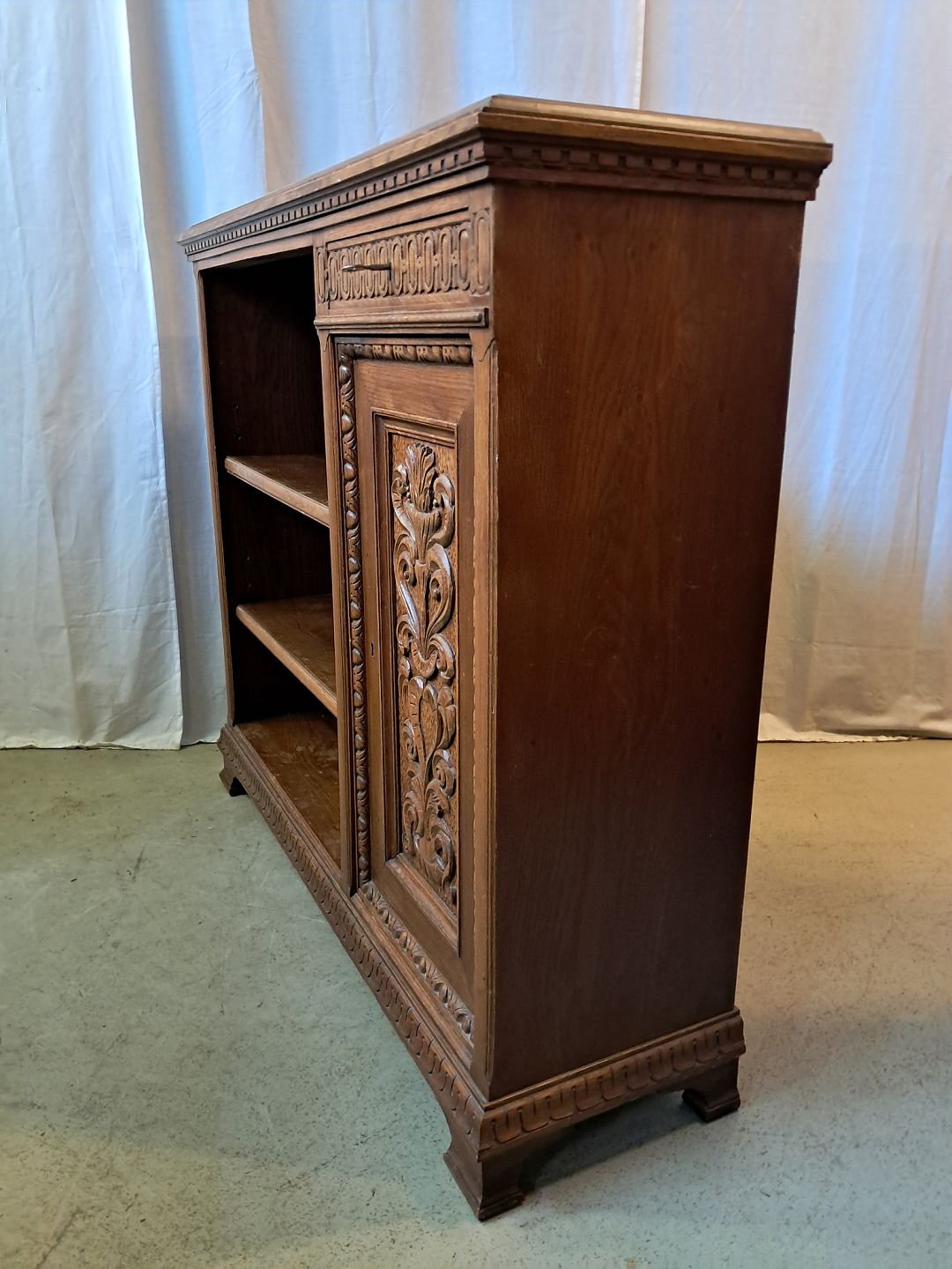 Reol i fineret egetræ, fra 1930erne.