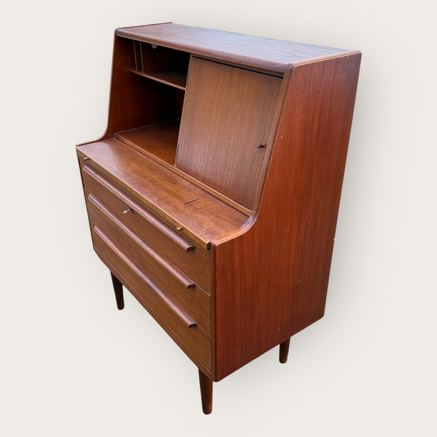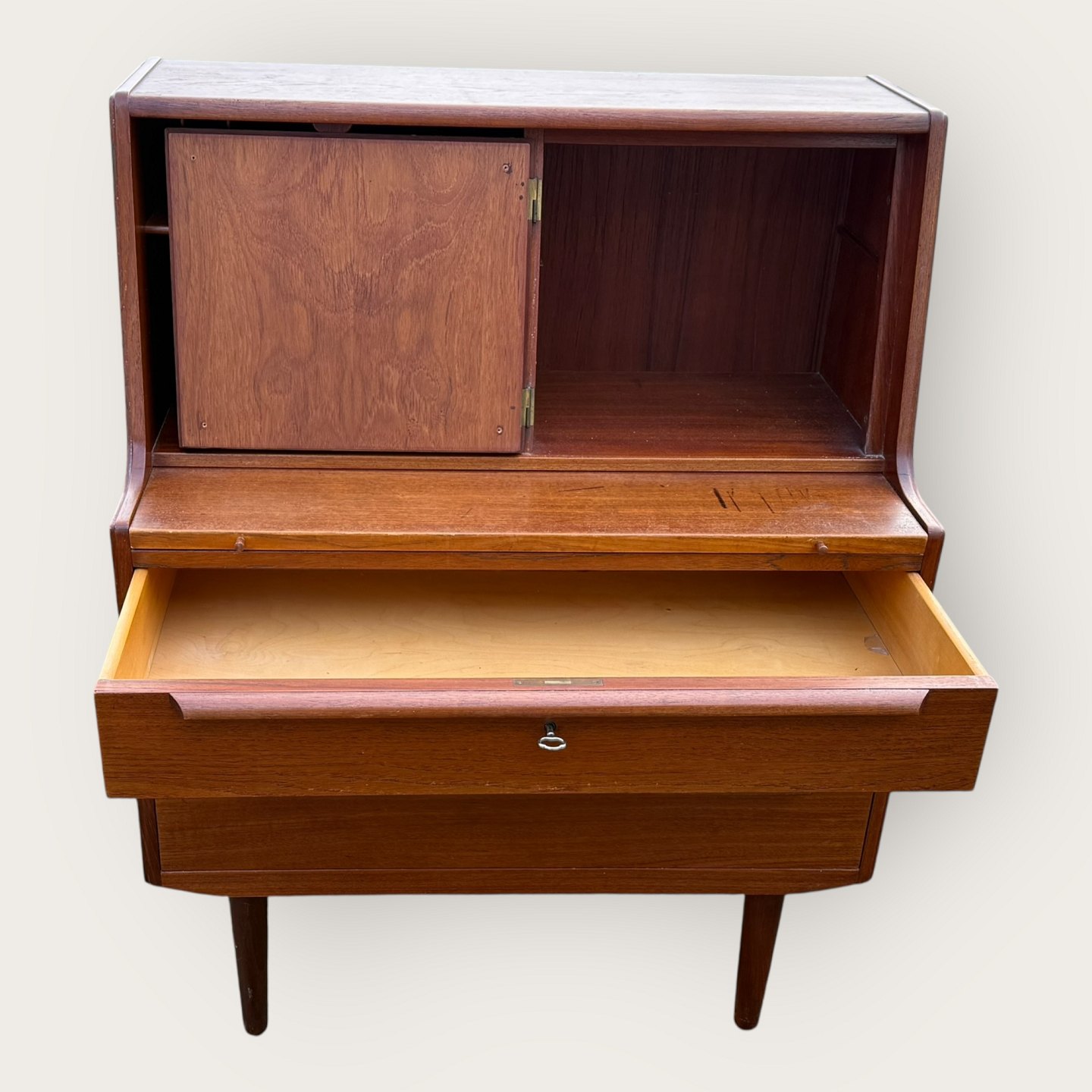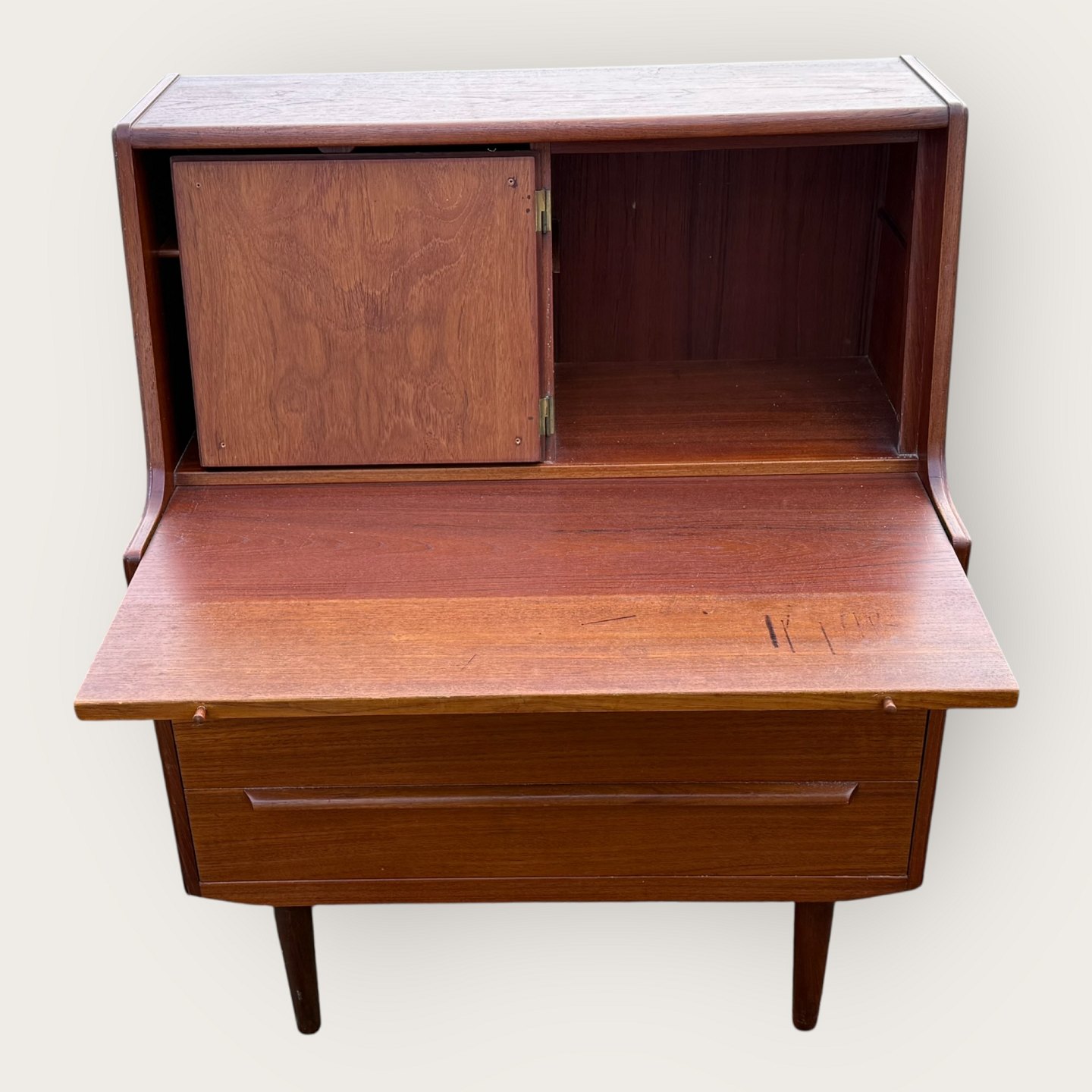 Chatol mit Schreibtafel aus Teakfurnier aus den 1960er Jahren, dänisches Design, Maße: H x B x T 109 x 84 x 44 cm *Gebrauchsspuren vorhanden*