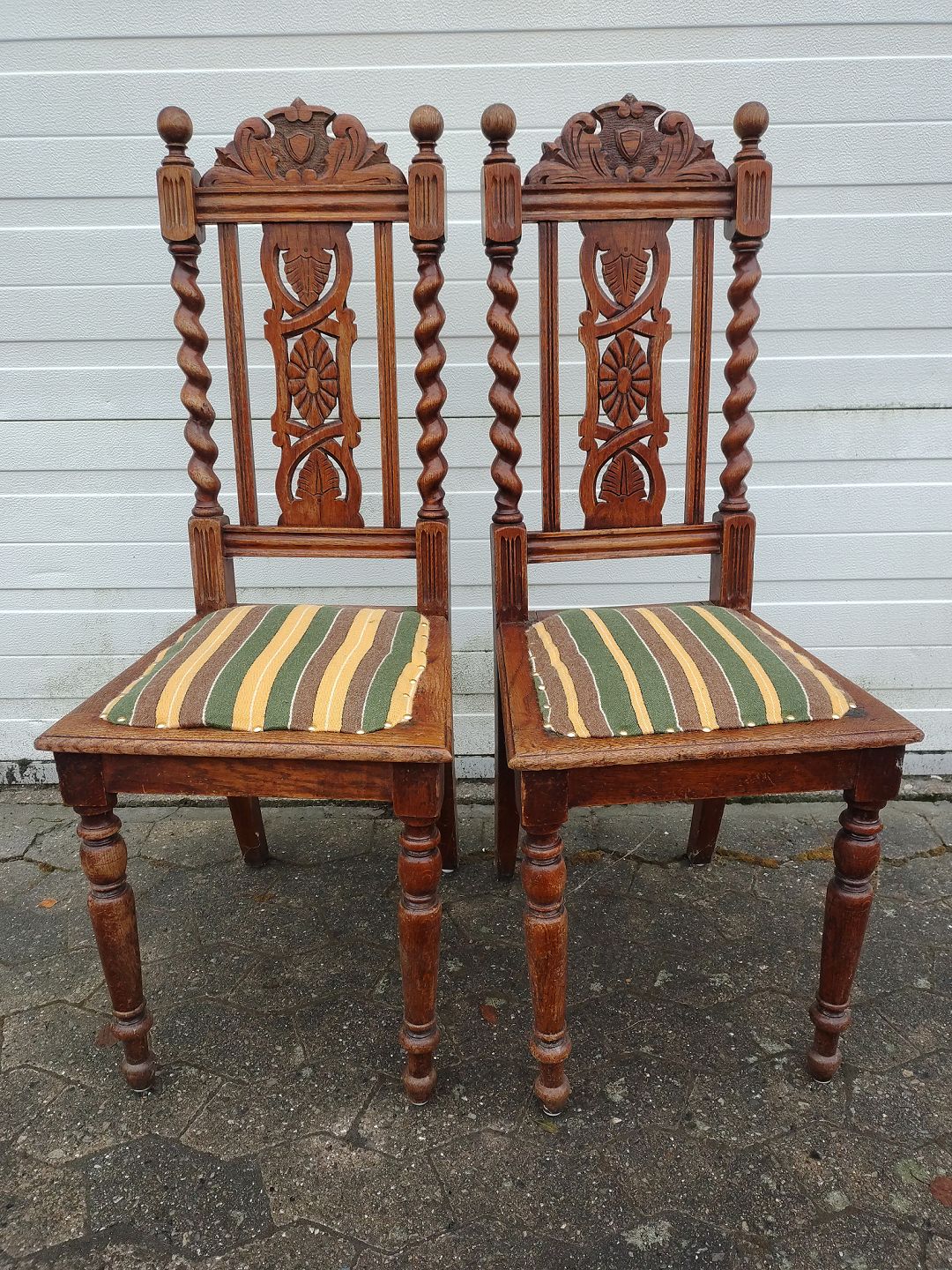 2 Stole i bejdset massivt egetræ, fra 1920erne.