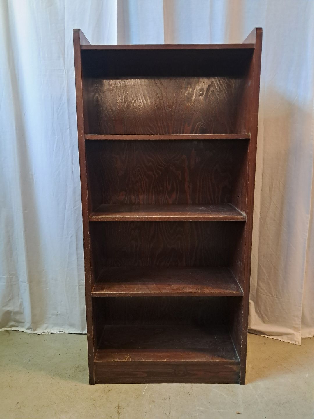 Reol i massivt bejdset og lakeret fyrretræ, fra 1950erne.