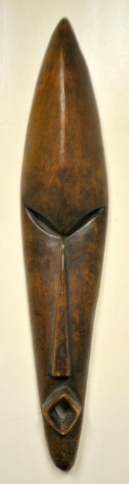 Afrikansk udskåret træmaske, start 20. årh. L: 58 cm. B: 11,5 cm.