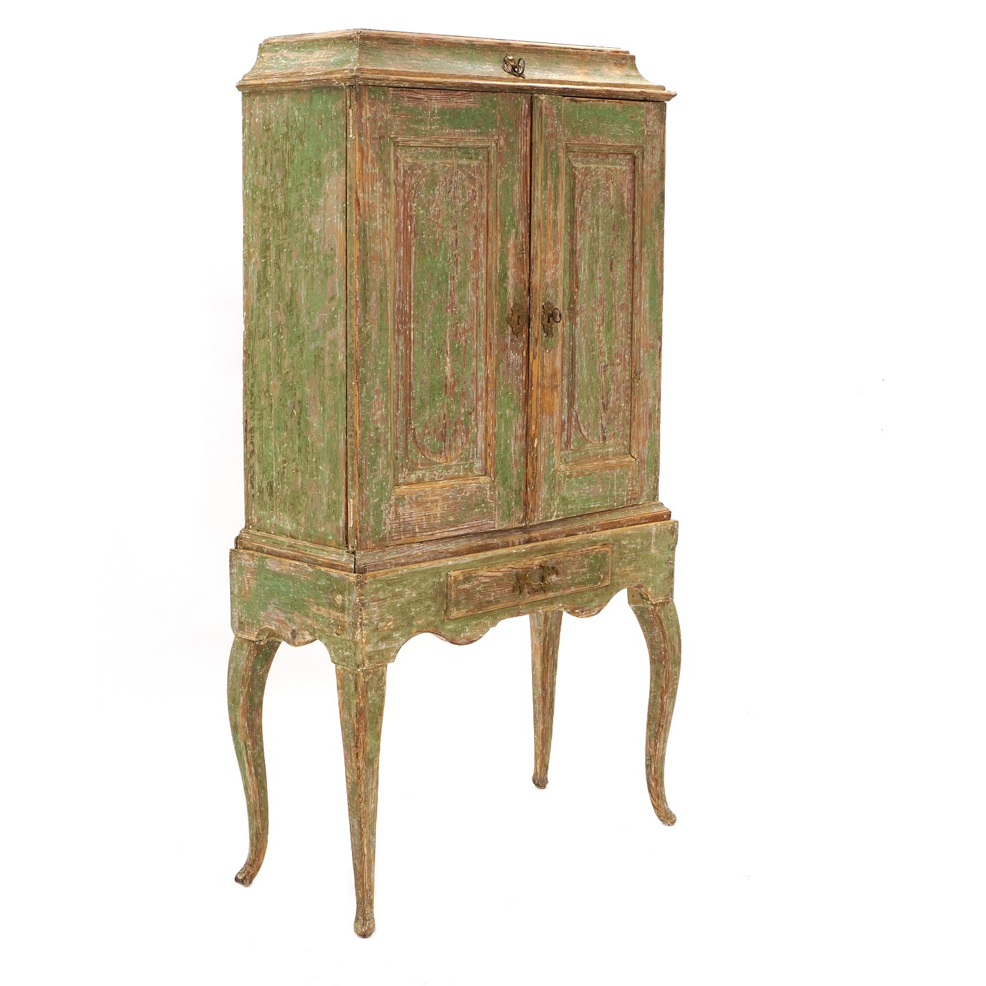 Svensk rokoko skab. Overdel med to låger bag hvilke hylder. Toppen med lille aflåseligt rum. Sverige ca. år 1760. H: 164cm. B: 91cm. D: 39cm