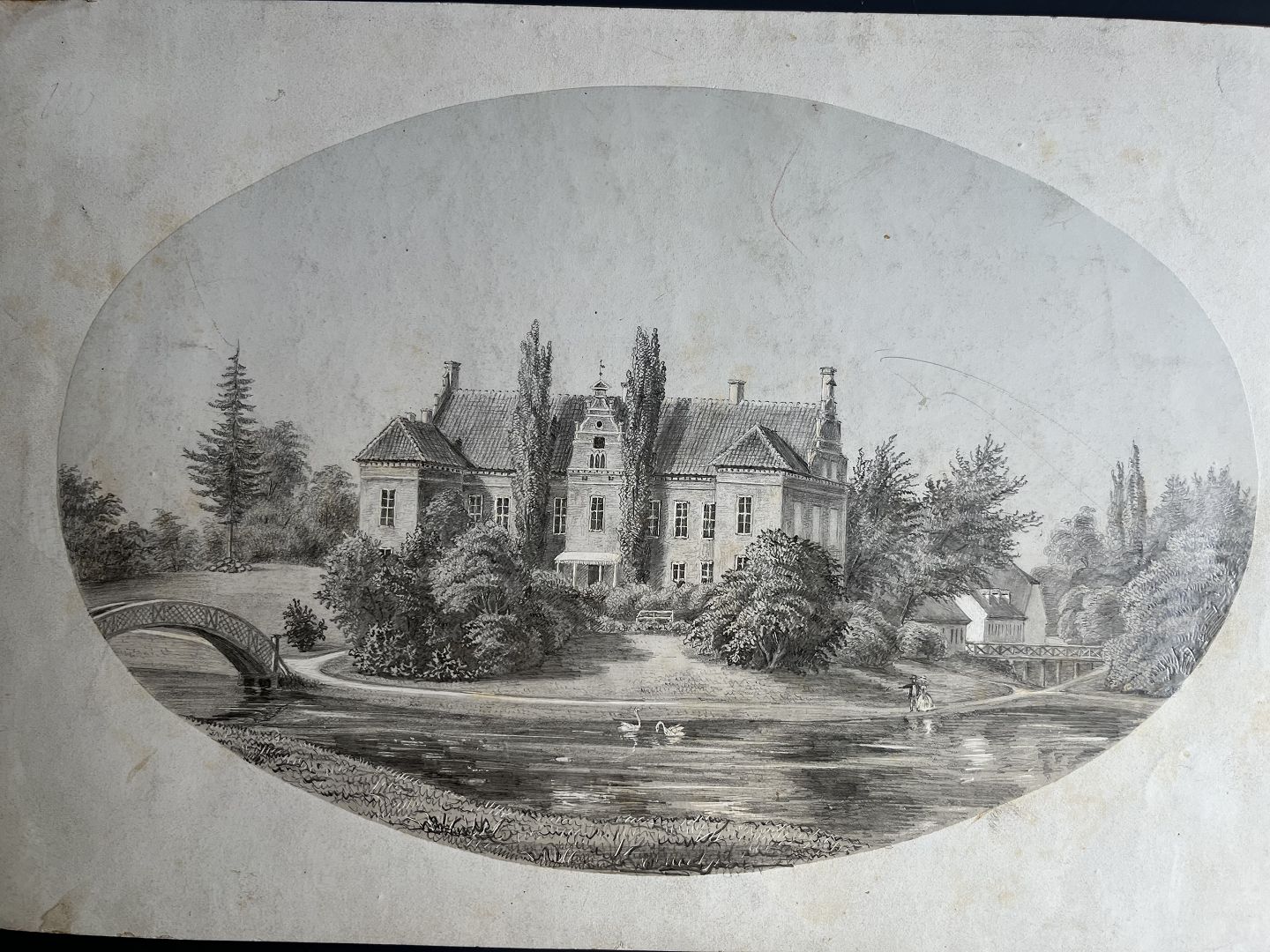 Tegning af Næsbyholm Slot ca 1850.
