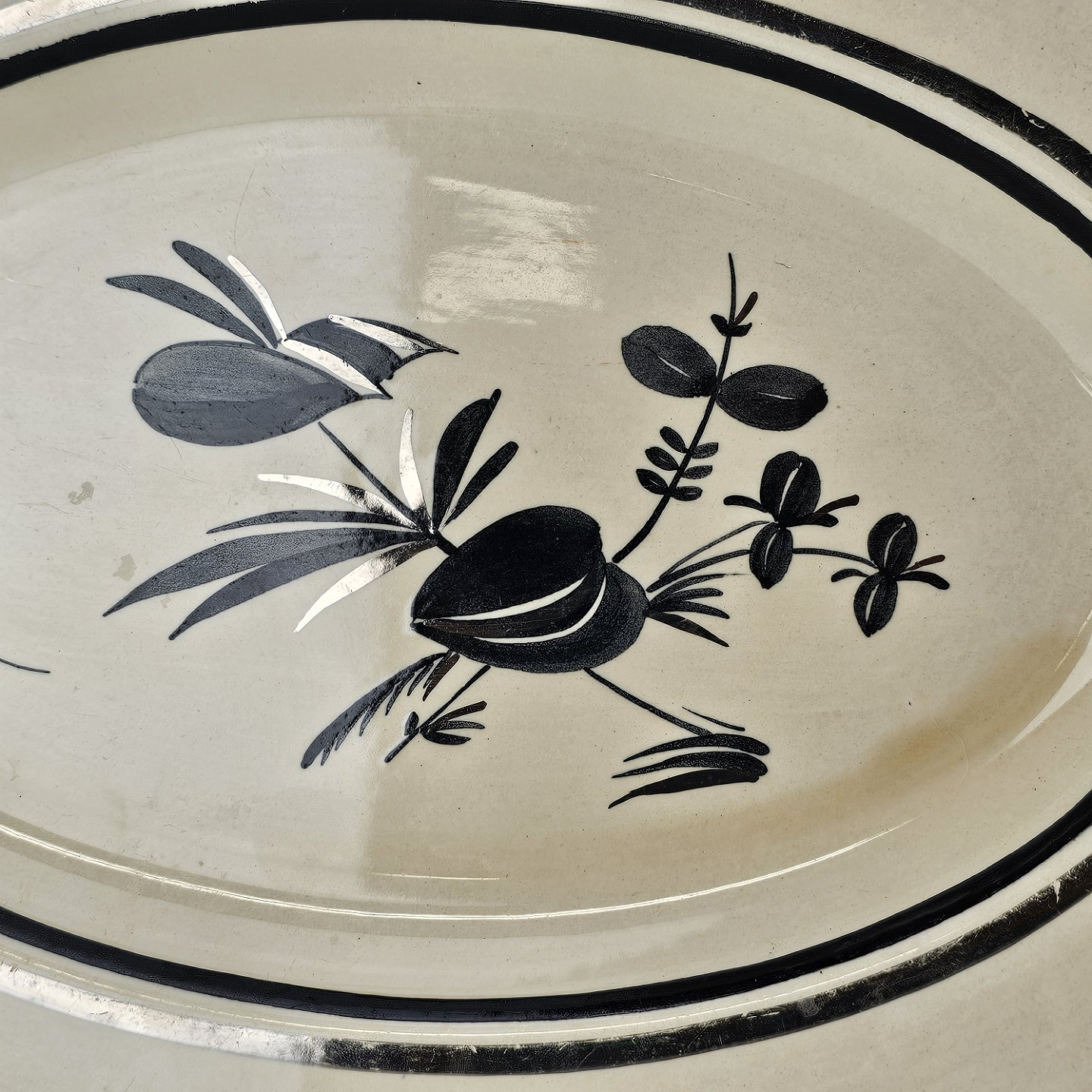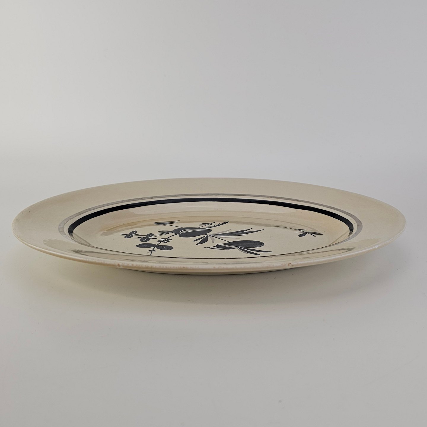 Ovalt fad i fajance fra stellet Dragsholm fremstillet i perioden 1934-1965.