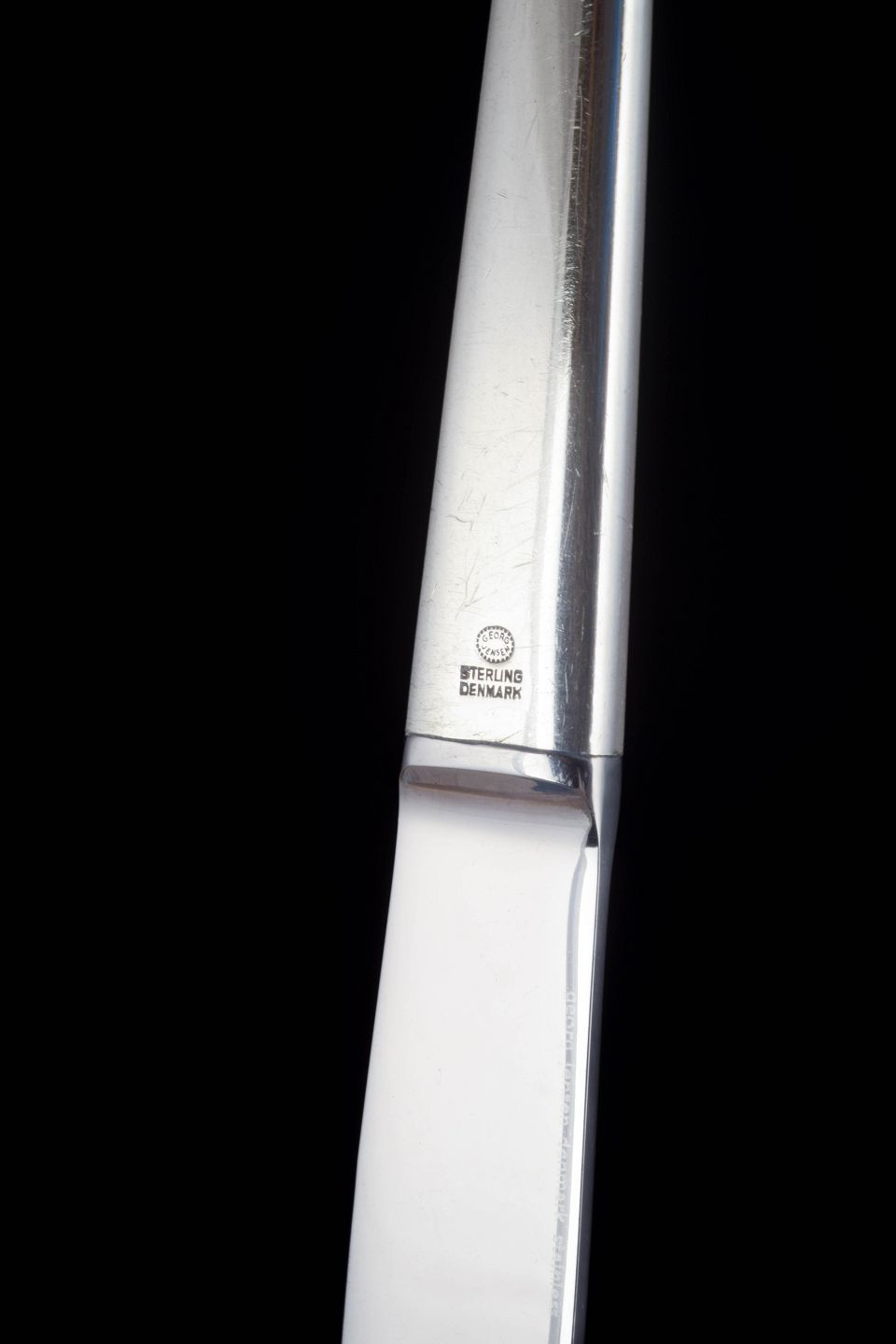 Text zugänglich auf Dänische: Henning Koppel for Georg Jensen, to frokostknive Caravel.