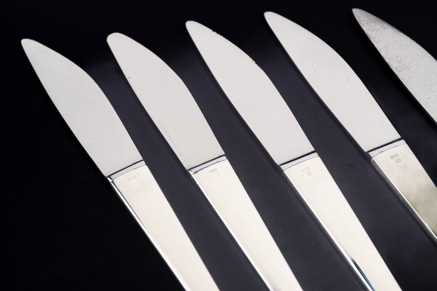 Text zugänglich auf Dänische: Henning Koppel for Georg Jensen, sæt af seks middagsknive Caravel.