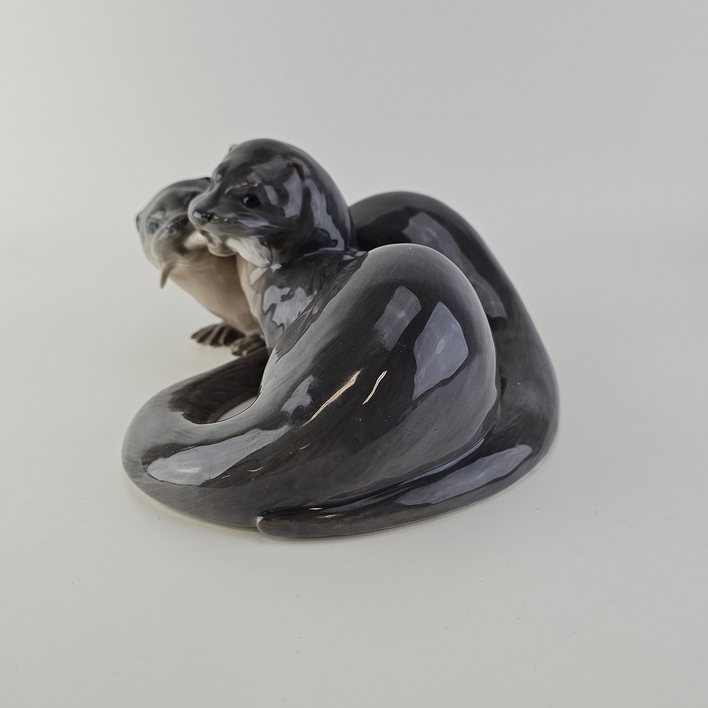 Sjælden figur i kongeligt porcelæn med motiv af to oddere og en fisk