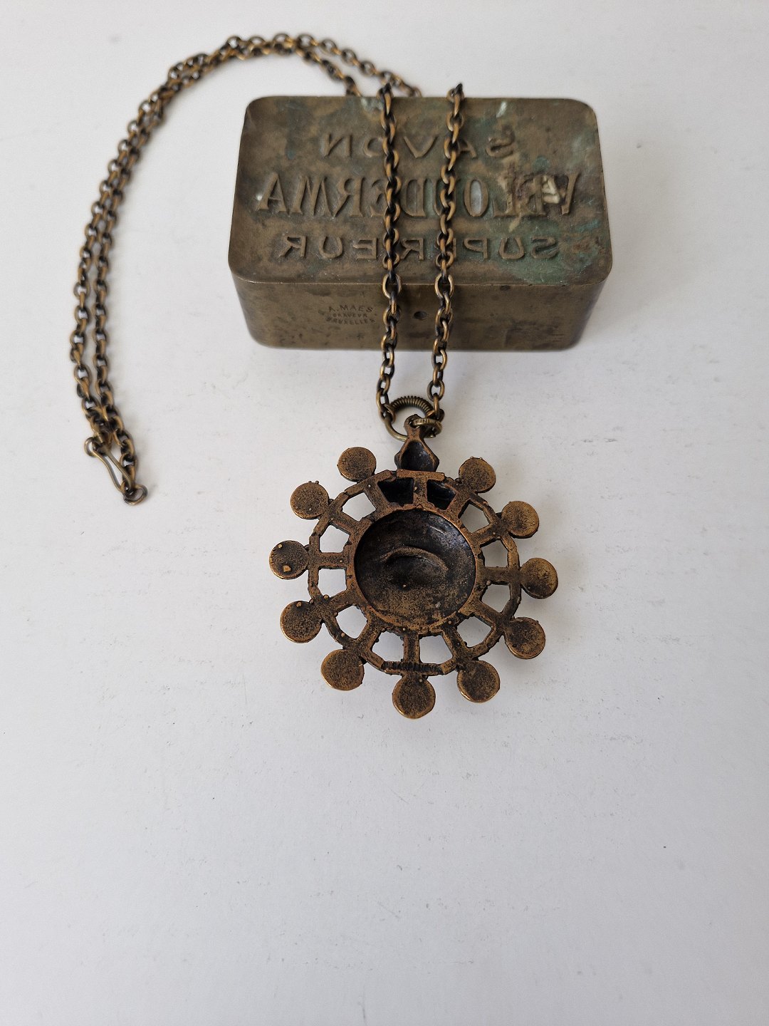 Vintage bronze halssmykke, vedhænget er udført som krysantemum