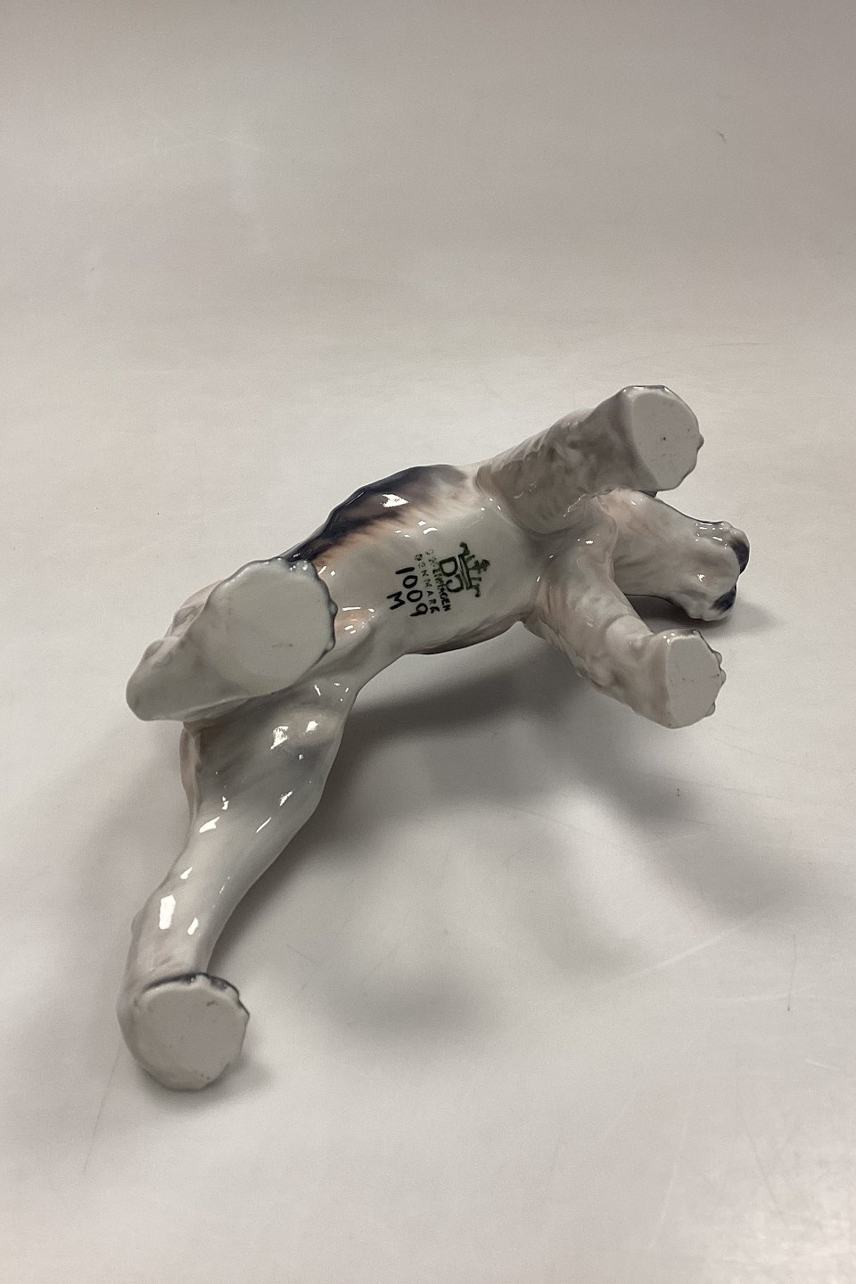 Dahl Jensen Figur - Ruhåret Foxterrier No. 1009. Beigebrun med mørke aftegninger. 2. Sortering med lille sort plet på ryggen.