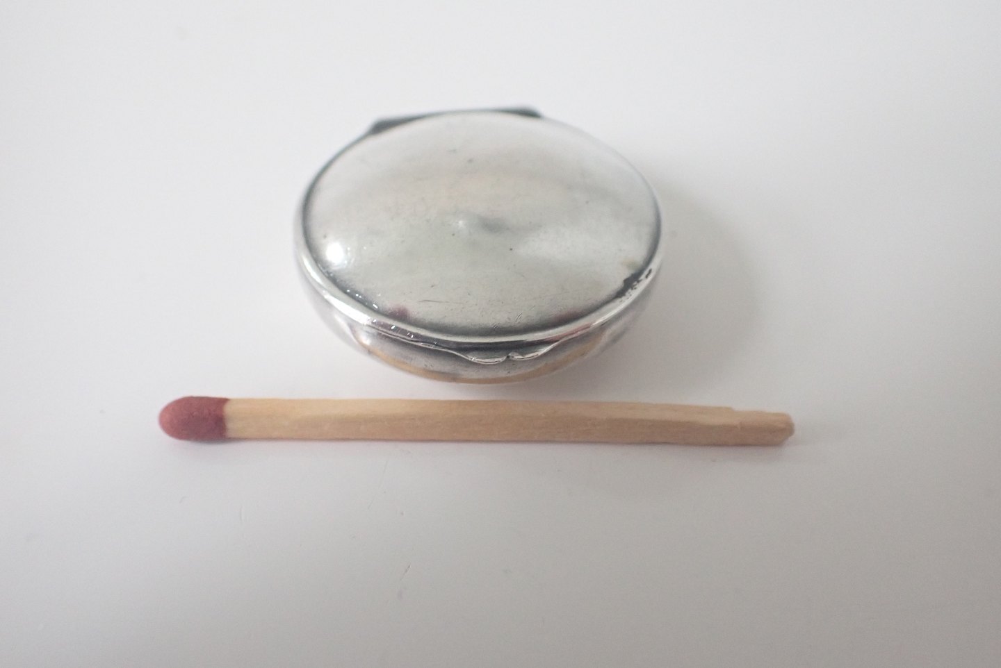Æske til venstrer: Hans Jensen, Aah. (1937 - 1957) - glat rund pilleæske i 830 sølv. Stemplet HJ, 830s. Ca. 1940.Vægt: 11,2 gram. Højde: 1,4 cm. Diameter: 3,5 cm. I fin stand. Pris: 300 kr.